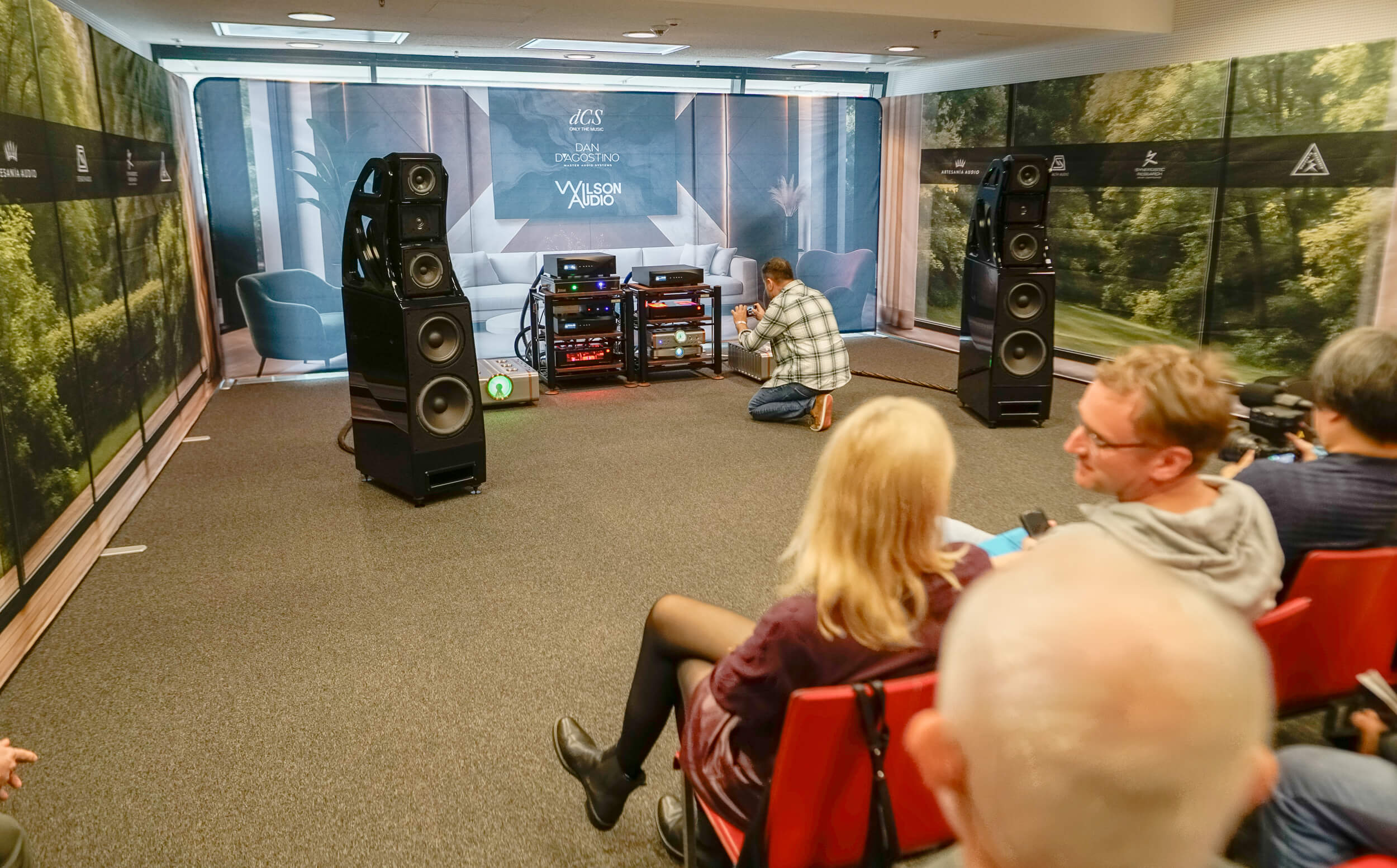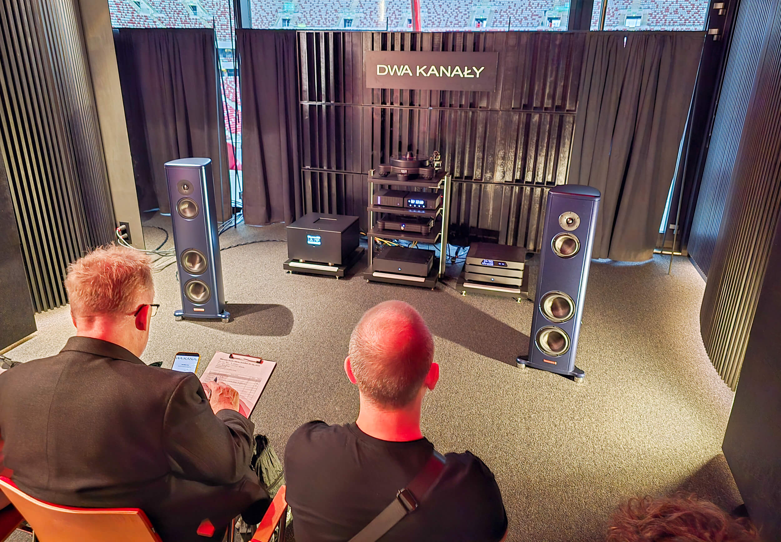 Ook Poolse hifi-clubs krijgen van de organisatie plaats om hun zelfbouwprojecten voor te stellen; de waardering van bezoekers voor technici is hier groot. Maar niet alles is in de hotels is niche of traditioneel. Twee van de best klinkende kamers werden ingenomen door Dutch & Dutch (met hun nieuwe 6c, boven) en door Kii Audio (met de Kii Seven, onder), toch wel voorbeelden van de geslaagde toepassing van de allernieuwste audiotechnieken.