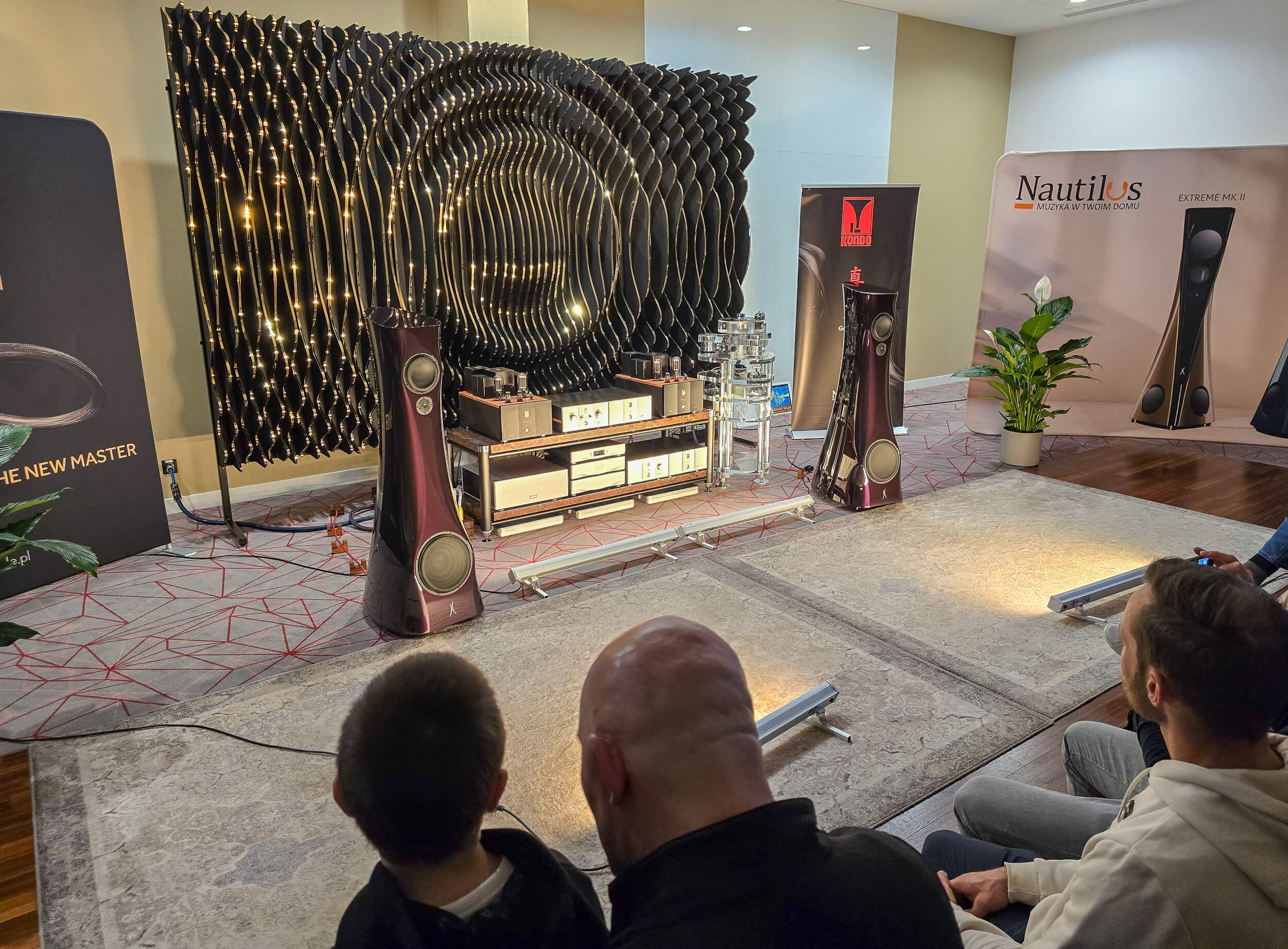 Of de Bowers & Wilkins-kamer even spannend was? Qua klank misschien niet helemaal, maar toch was het hier altijd beredruk. Je krijgt nu eenmaal niet vaak de kans om rustig te luisteren naar de iconische Nautilus-speakers, in Warschau uitgedost in een bloedmooi rood.