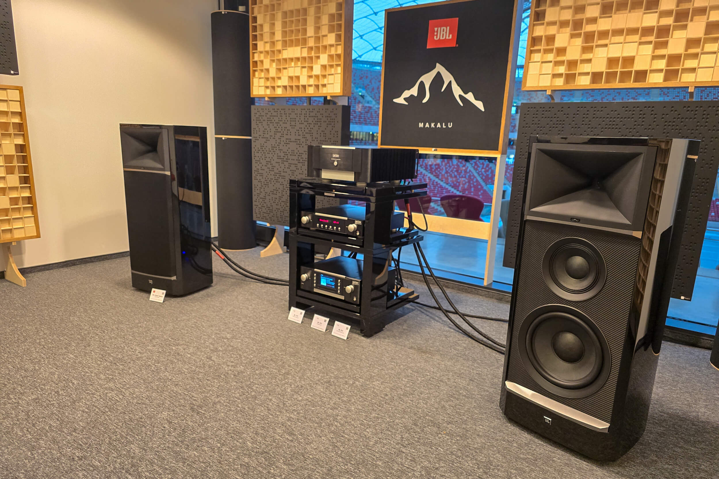 Mooi was ook de ruimte waarin JBL de Summit Makalu’s had opgesteld, met een fraai Mark Levinson-systeem (de nummers van dienst waren de 534, 523 en 519) dat zorgde dat de aanwezigen konden genieten van deze superdynamische muziekmakers.
