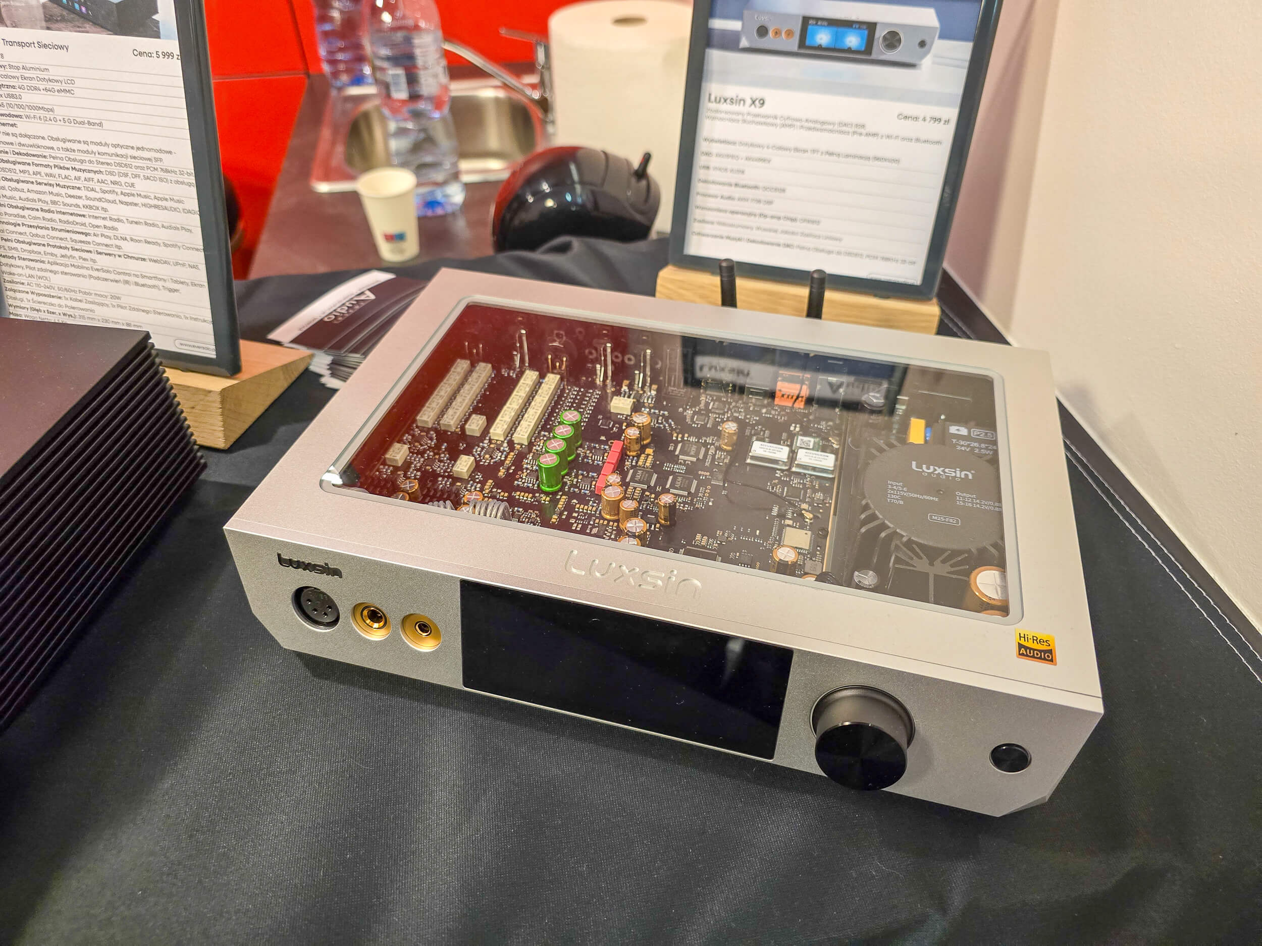 Ook te zien was de X9 DAC-hoofdtelefoonversterker van Luxsin, een nieuwer zustermerk van Eversolo (die op z’n beurt verwant is met Zidoo). Het voorpaneel dat naar voren helt, lijkt wel slim. Als je ernaast zit met je koptelefoon op, kun je makkelijk het 4-inch aanraakscherm aflezen.