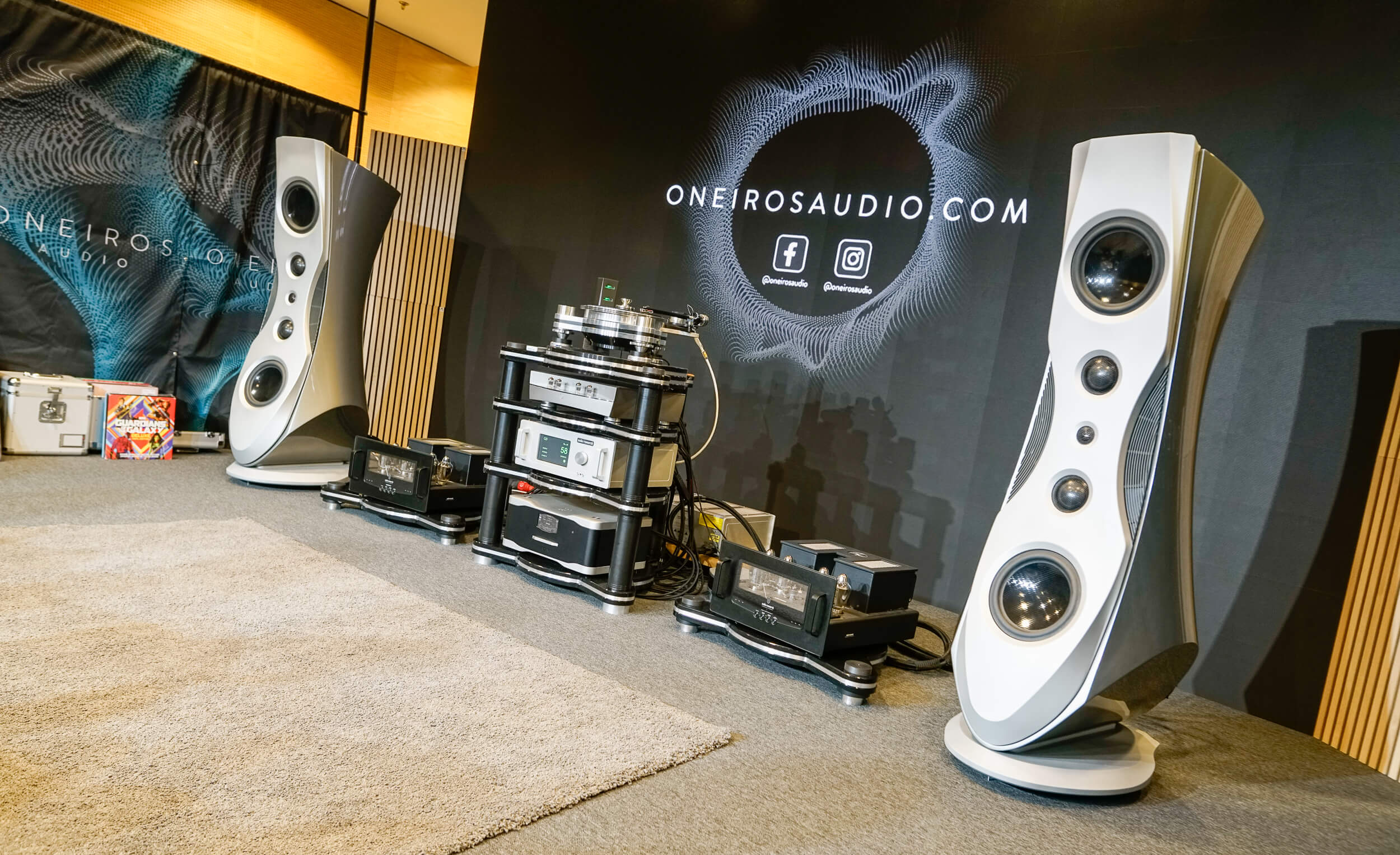 De presentatie van de eerste speakers van Oneiros Audio waren vooraf aangekondigd als een hoogtepunt van de show. Ongetwijfeld heel indrukwekkend gebouwde torens (1,61m hoog), die expliciet ontworpen zijn om niet te lijken op een typische luidspreker maar wel om heel weelderig in de kamer te staan. Dat lukte echt wel, maar de wow-factor ontbrak een beetje bij het luisteren, misschien wel omdat de opstelling niet helemaal correct was.