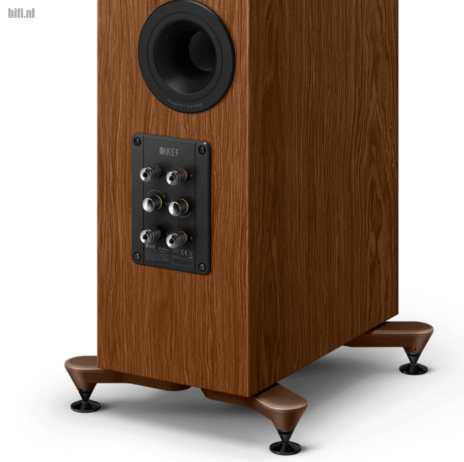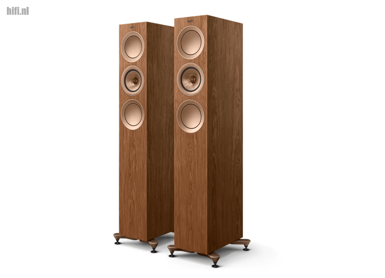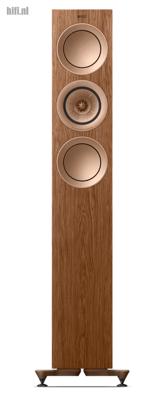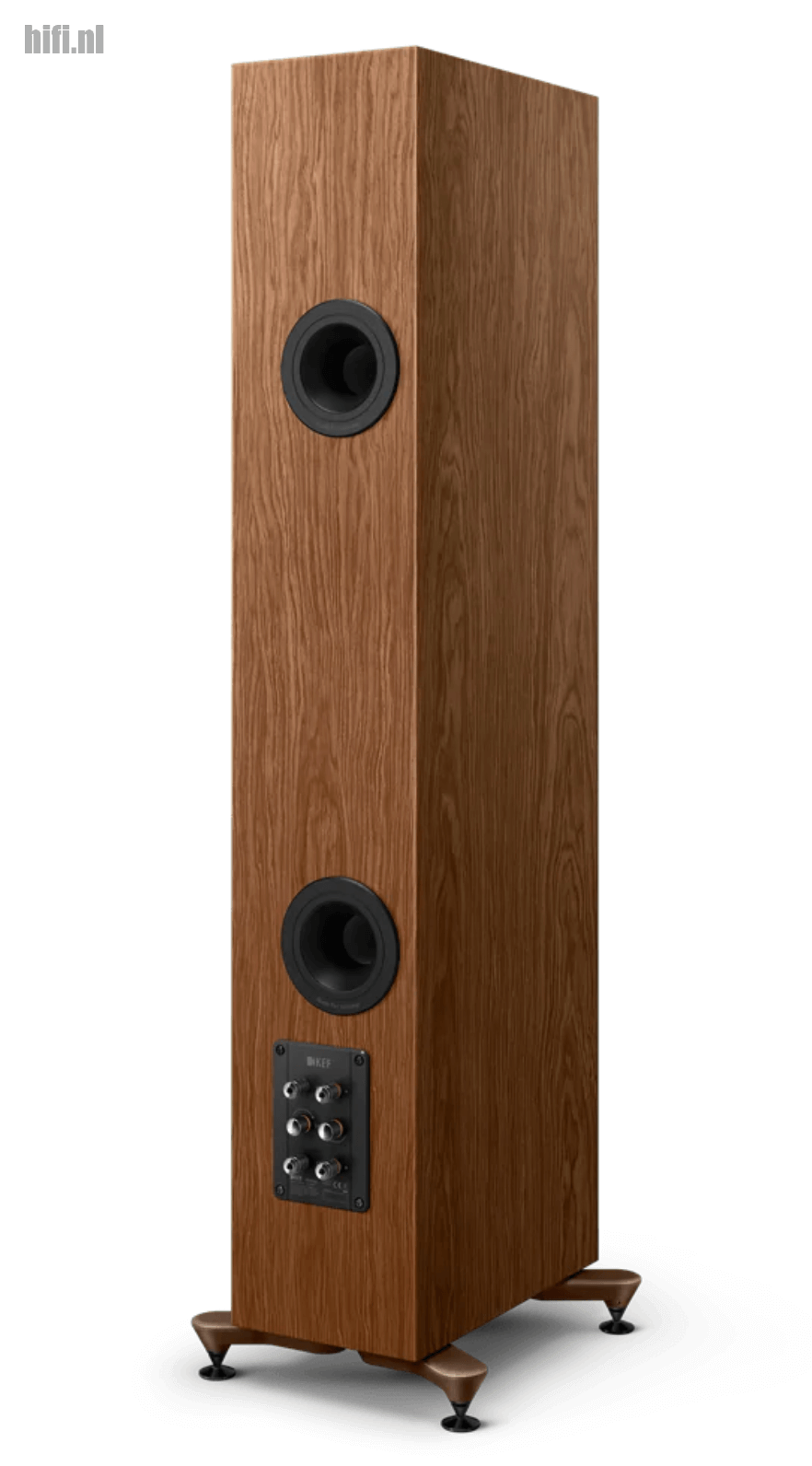 De R-Serie van KEF profiteert aanzienlijk van de ‘flagship’ technologie die voor de Reference Serie is ontwikkeld. Ik maak mezelf graag wijs dat dit misschien wel de reden is dat ze het de R-Serie genoemd hebben. Niet helemáál op reference-niveau uitgewerkt, maar wel de gelegenheid biedend om voor een bereikbaar bedrag iets heel fraais aan te schaffen dat daarbij in de buurt komt. De vier drivers zijn in een D’Appolito-opstelling bovenaan in de baffle geplaatst. Dat wil zeggen: de twee 13 centimeter aluminium-hybride woofers boven en onder de 12de-generatie tweeweg Uni-Q driver die bestaat uit een 12,5 centimeter aluminium middentoner met in het hart de 2,5 centimeter grote aluminium tweeter, die voorzien is van de bekende ‘tangerine’ waveguide.