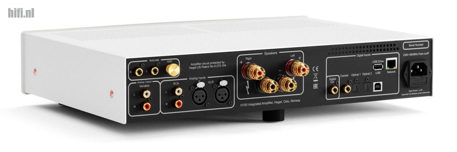 De H150 van de Noorse fabrikant Hegel is een compacte geïntegreerde versterker met analoge en digitale ingangen. De H150 is voorzien van uitgebreide streaming-functionaliteit en voor het eerst heeft Hegel een USB-ingang gemonteerd, waarmee een USB-opslagmedium met muziekbestanden rechtstreeks op de versterker kan worden aangesloten. De liefhebber van vinylplaten zal blij zijn met de ingebouwde phono-versterker. Hegel belooft met de veelzijdige H150 uitstekende audioprestaties en een hoge mate van gebruiksgemak. Dat vraagt om nader onderzoek.