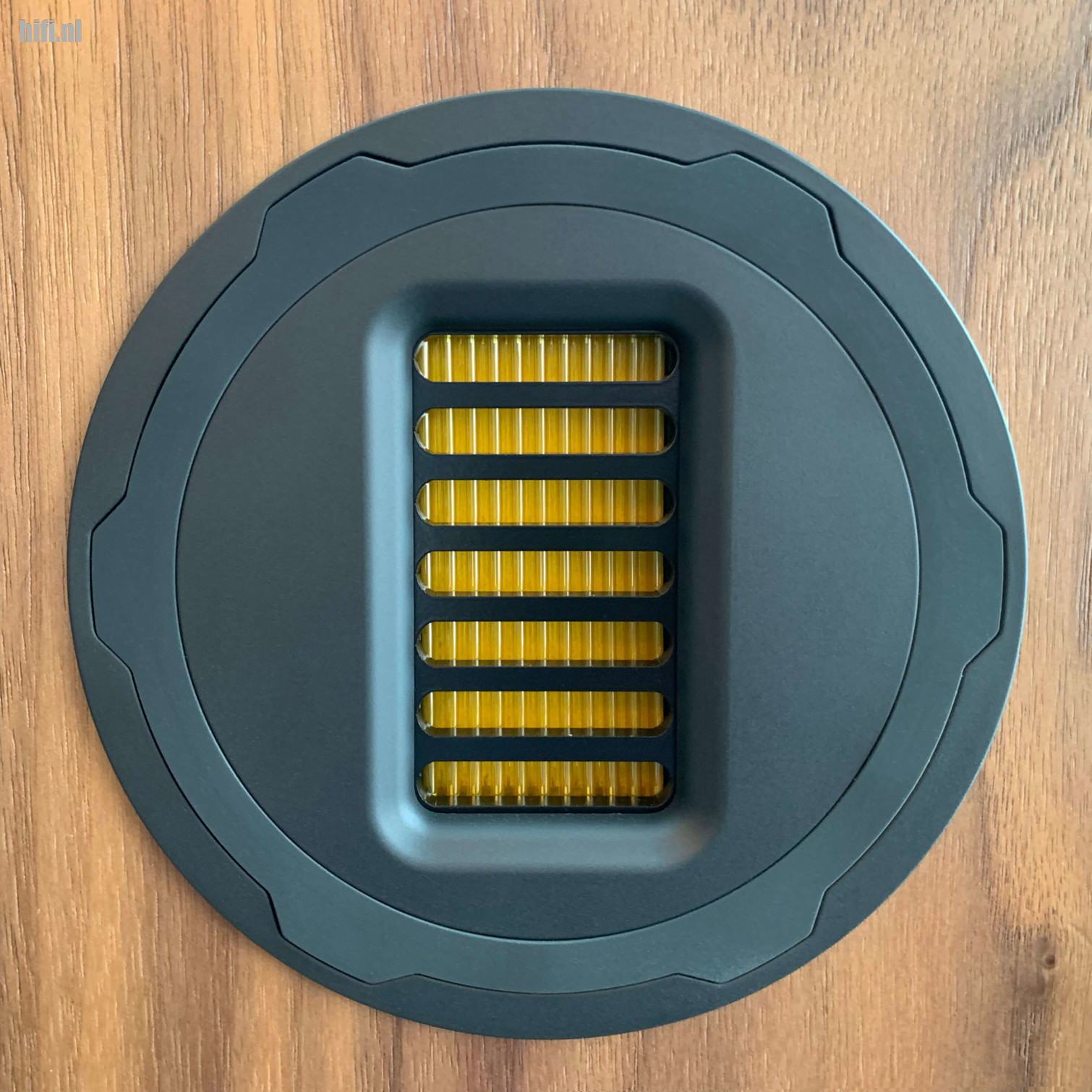 Gebleven is de beeldbepalende bouwtrant met drie drivers, waarvan er twee heel opvallend zijn: de grote dome voor het middengebied en als tweeter een Air Motion Transformer, kortweg AMT, hier op de foto afgebeeld.