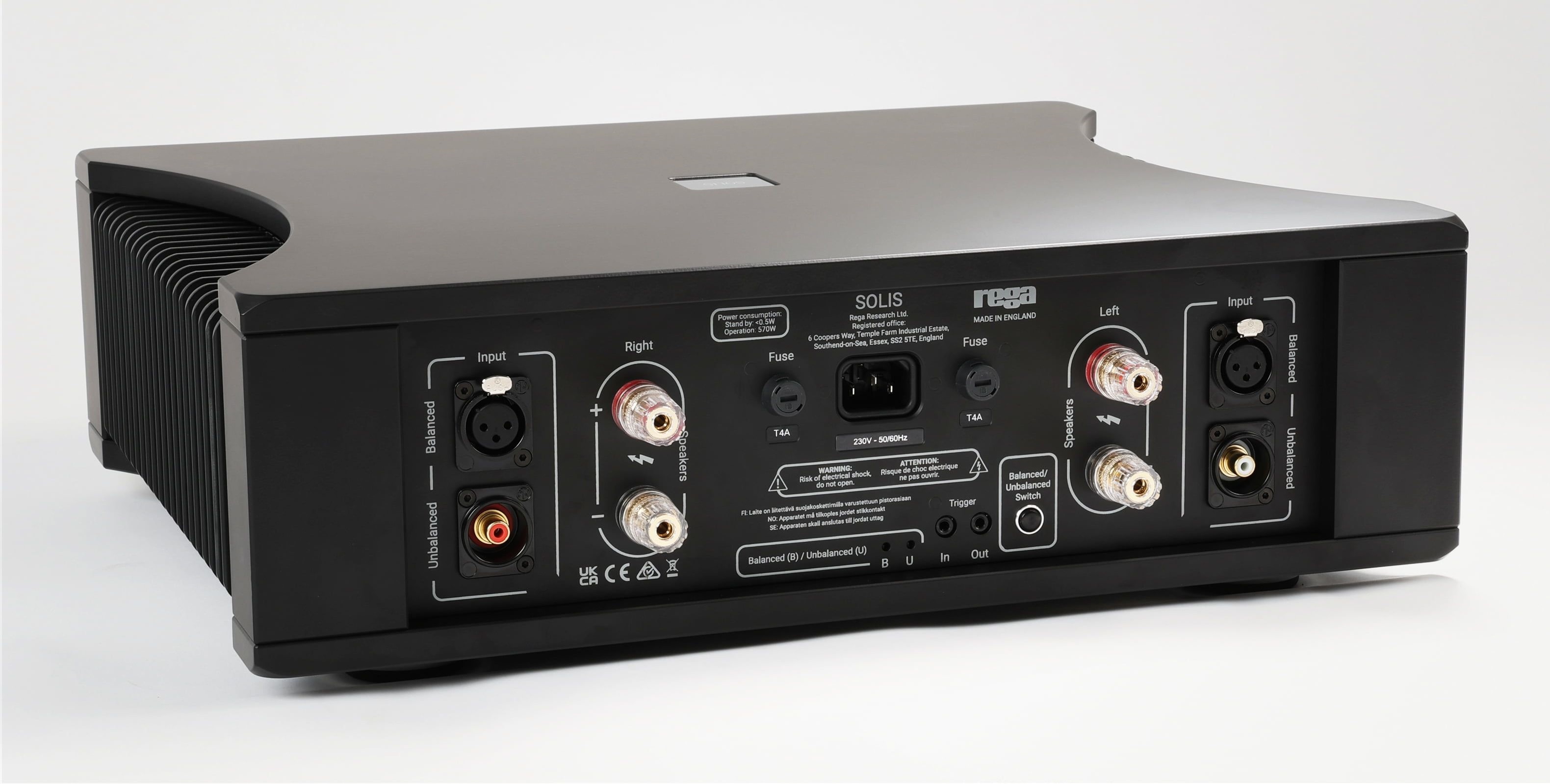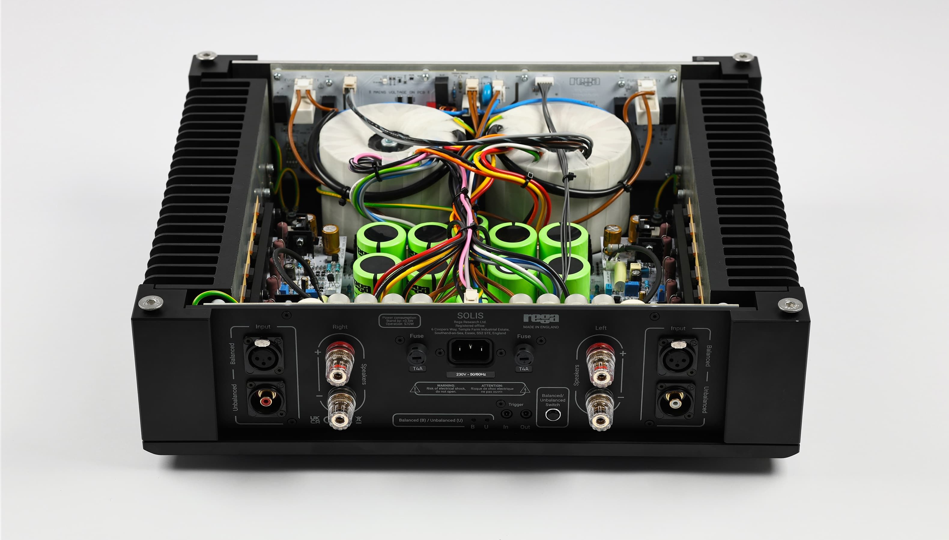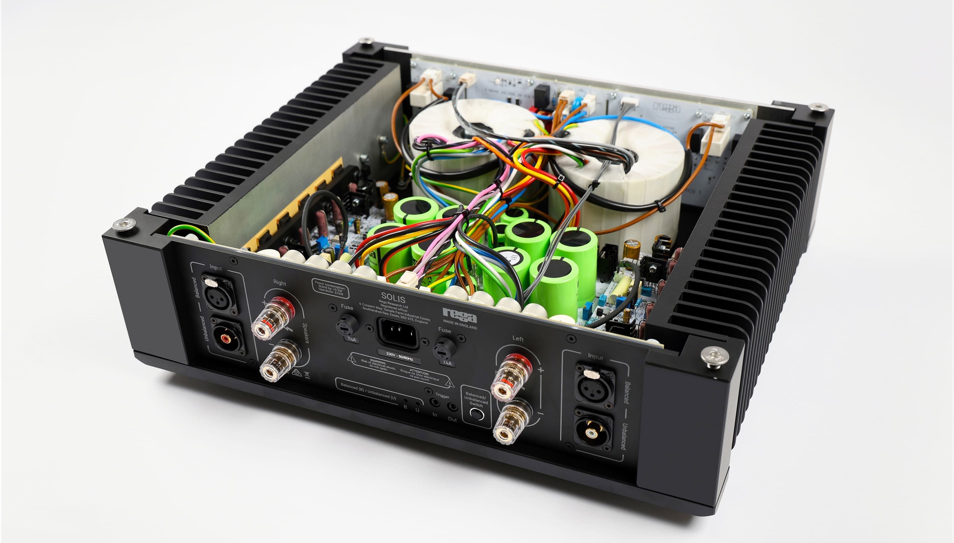De Solis is ontworpen om de meest veeleisende luidsprekers aan te sturen en is volgens de Rega de perfecte partner voor de Mercury. Het ontwikkelteam heeft de afgelopen vier jaar obsessief gewerkt aan de ontwikkeling en finetuning van het circuit om de meest meeslepende en nauwkeurige prestaties te creëren. Het voordeel van een apart chassis voor de voorversterker en eindversterker is dat de laagspanningsgevoelige schakelingen geïsoleerd kunnen worden van de hoogstroom eindversterkerschakelingen. Dit vermindert interferentie tussen de voorversterker en eindversterker, wat leidt tot een minder ruisachtig signaalpad en een zuiverder signaal.