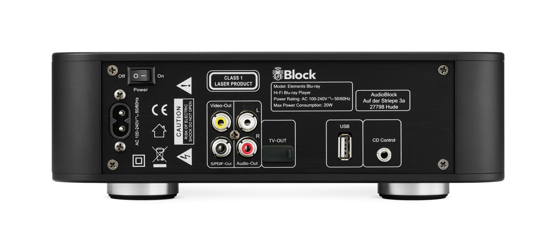 De Block Elements Blu-ray is de perfecte speler voor het Elements 5.1-systeem en brengt klassieke films en concerten in hoge kwaliteit naar de huiskamer. Natuurlijk kan deze schijfjesspeler ook DVD’s en CD’s afspelen. De vorm en kleur van de behuizing passen helemaal bij de Elements 5.1 AV-receiver. Het opgegeven frequentiebereik voor tweekanaals geluid, zoals het afspelen van CD's, loopt van 20 Hz tot 20 kHz en de S/R-verhouding is groter dan 85 dB.