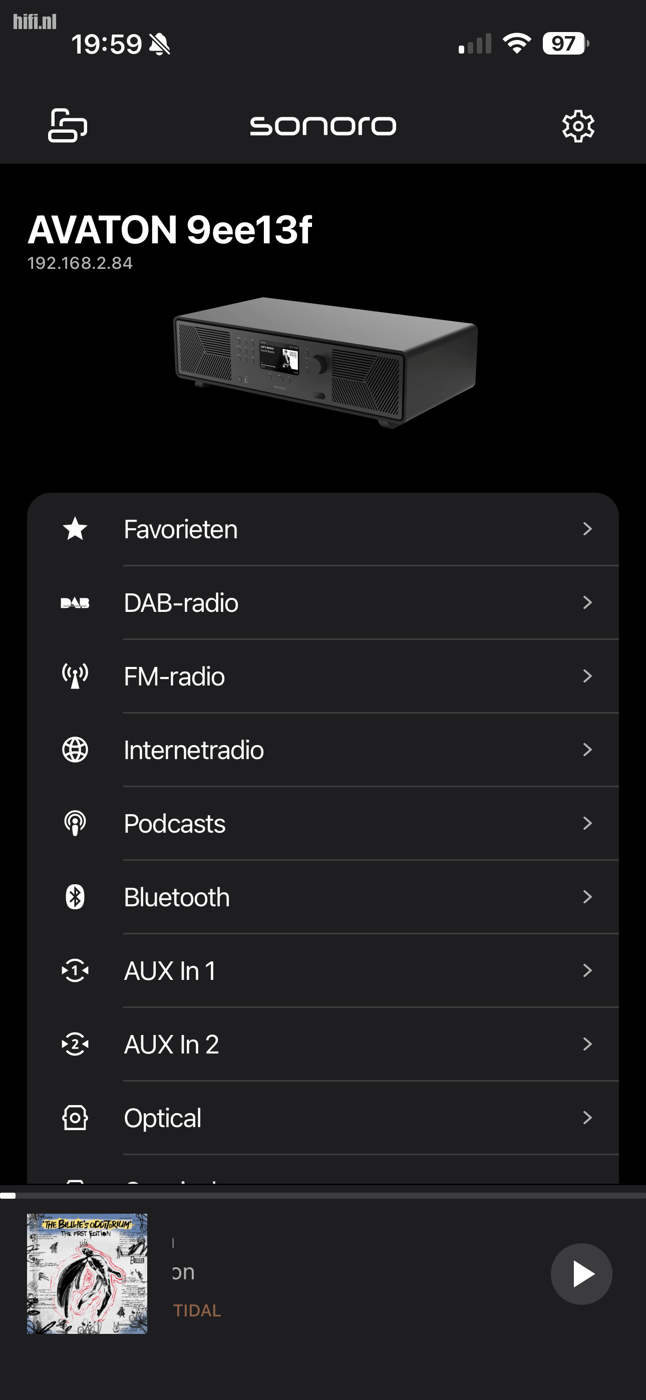 Voor een serieuzere luistersessie gebruiken we Tidal en muziek op de NAS. In cd-kwaliteit streamen we vanaf de server Foo Fighters – Learn to Fly. Het laag en midden zijn stevig aanwezig, maar niet overdreven. Wat we horen en opmerkelijk vinden, zijn de gitaren: de plaatsing in de kamer verrast. De Sonoro AVATON is vrij smal, dus dat de muziek zo breed en groots in de woonkamer wordt geplaatst, is een mooie ervaring. De focus van de muziek ligt centraal, maar de beleving wordt eromheen opgebouwd.
