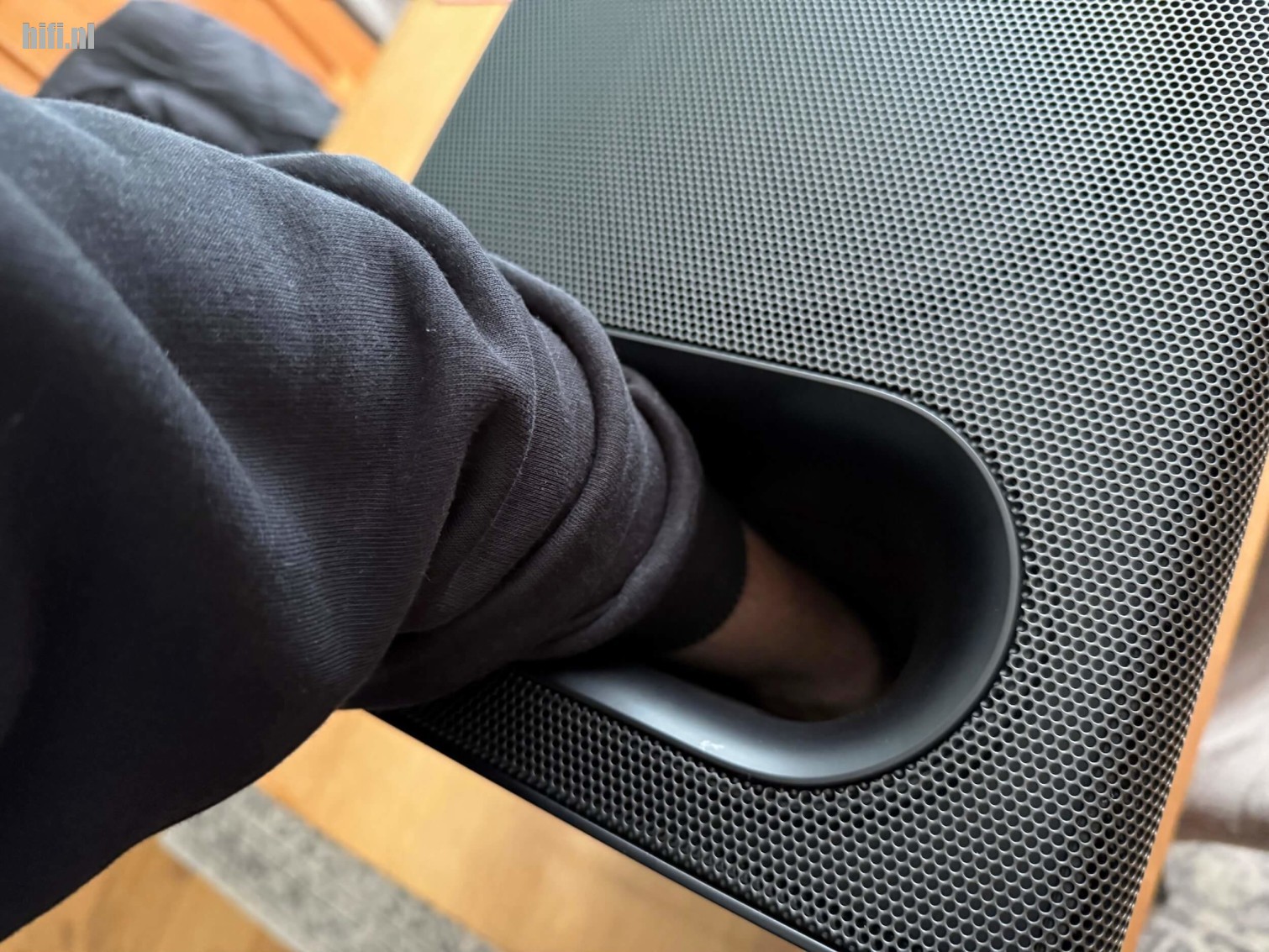 Tijdens de reviewperiode maak ik me wel zorgen over de ruime reflexpoort van de subwoofer. Niet omdat hier een flinke partij laag uitkomt, maar vooral omdat deze net genoeg ruimte biedt om een jonge kitten te verlijden erin te kruipen. Eenmaal opgesloten komt er namelijk meer dan een blikje kattenvoer aan te pas om deze weer in je armen te sluiten. Gelukkig heeft Sony de elektronica in een separaat compartiment gescheiden zodat het natte neusje de netspanning terminals niet nieuwsgierig kan onderzoeken en de “Schrödingers kat” theorie niet aan de praktijk wordt getoetst. Wanneer een jonge kitten klem komt te zitten in de poort, dan zie ik echt niet zo snel mogelijkheden om deze er zelf ongeschonden uit te krijgen. Om de subwoofer met kitten en al met PostNL mee te geven om deze bij de technische dienst van Sony te laten bevrijden klinkt ook niet erg diervriendelijk. Hiervoor werkt PostNL niet snel genoeg. Hier had ik dus liever een rooster of een neerwaarts vurende reflexpoort gezien die het onmogelijk maakt om nieuwsgierige huisdieren te verleiden.