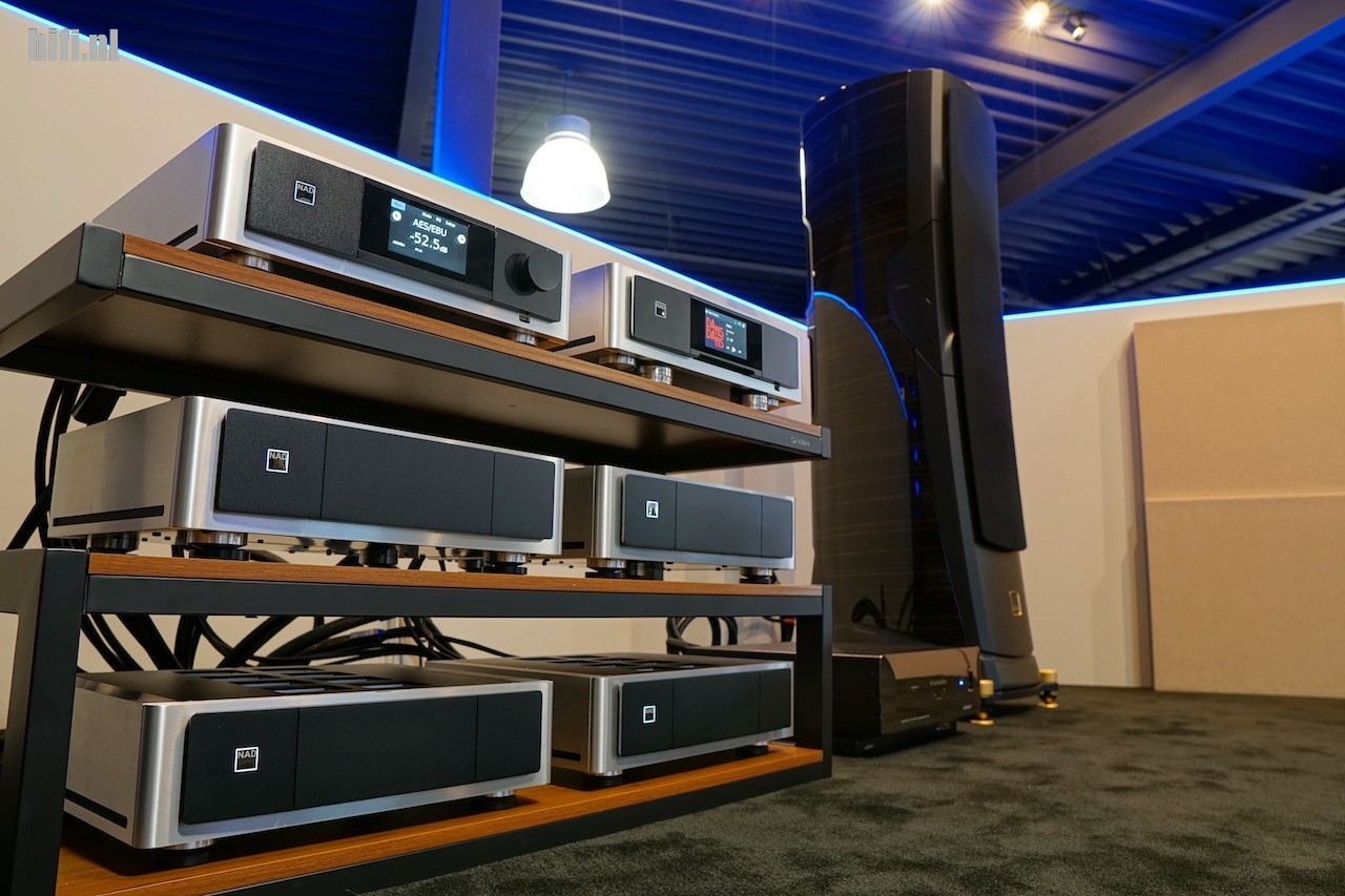 Samen met Menno nestelen we ons in de bank die voor de kolossale DALI KORE-speakers staat. Het is zo’n diep model waar je lekker in wegzakt. Ja, hier blijven we wel even. Tijd genoeg om de indrukwekkende opstelling te bewonderen die de Eindhovenaars hier exclusief hebben opgesteld. Nergens anders in de Benelux staan de KORE-weergevers te blinken, een mooie primeur die alvast een klant heeft overtuigd om de Deense topmodellen aan te schaffen. Het systeem dat de KORE’s aanstuurt kennen de DAE-bezoekers wellicht nog: vier NAD M23-eindtrappen met Purifi-versterking, een M50.2-streamer en een M12-DAC/voorversterker. Een mooi geheel, en dat vond die KORE-koper ook.