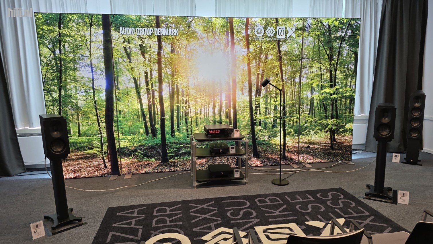 Audio Group Denmark is aanwezig in twee ruimtes. Een aanrader om daarbij in ieder geval te bezoeken is kamer 45 (met de toegankelijke merken van de Deense groep), waar de Axxess L1 monitors op indrukwekkende wijze Saltash Bells van John Surman heel holografisch en groots in de kamer neerzetten als we er even binnenlopen.