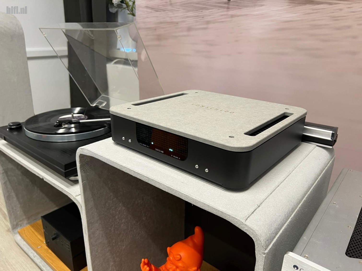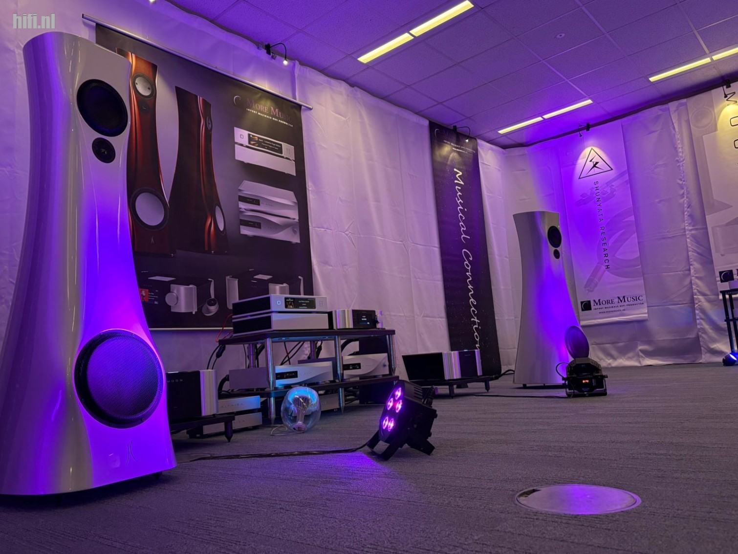 Ultra High-End met kapitalen dus, prima met elkaar verbonden met dank aan de mooie oplossingen van het Nederlandse Ikigai. En dat is voor menig bezoeker genieten. Ze worden er bovendien betrokken bij ‘luistertests’ (wel of geen voorversterker ertussen, wat zijn de verschillen) waar enthousiast aan wordt deelgenomen. De klank van het systeem is kleurrijk en dynamisch en zeer breedbandig en transparant.