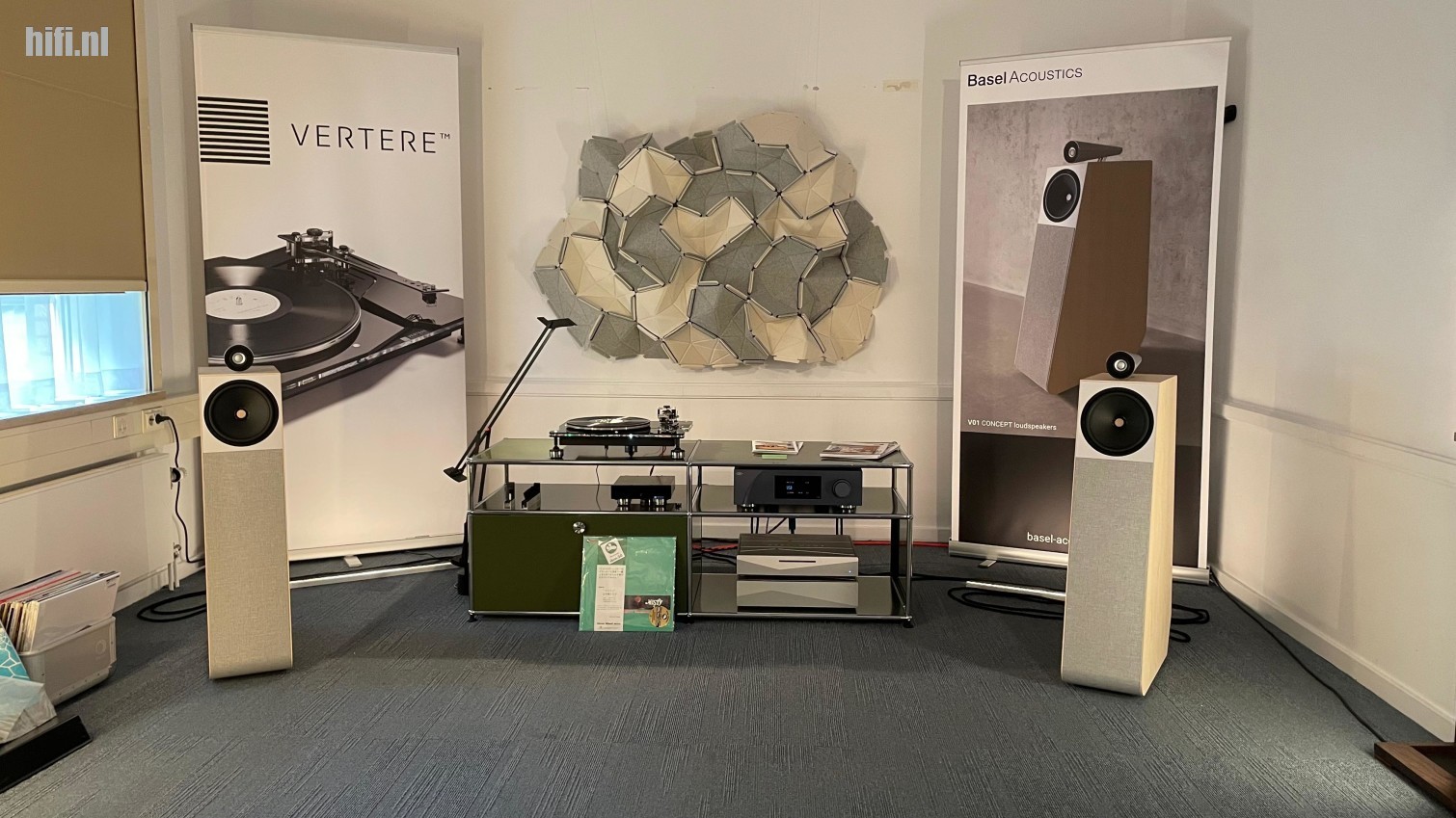 In de ruimte van Basel Audio (119) is de nieuwe V01 Concept luidspreker van dit Zwitserse merk te beluisteren. Het bijzondere ontwerp is van de hand van Sven Boenicke, en dat is goed hoorbaar. Aan een geïntegreerde versterker van CH Precision, met een streaming server van Innuos en een platenspeler van Vertere hebben ze een uiterst transparante en open klank, kleurrijk, dynamisch, zeer ruimtelijk en absoluut niet vermoeiend.