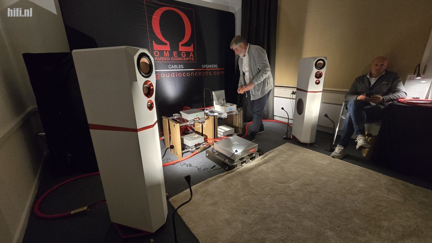 De Assolo versterker van Omega Audio Concepts uit Italië trekt eerst het aandacht in de kamer van BigBoysAudioToys, onder meer door de prachtige afwerking, maar eigenlijk valt alles hier op: de knalrode dikke kabels, de cd-transport (ja, hier wordt uitzonderlijk vooral met cd gemonstreerd) en DAC met hun solide aluminium behuizing – allemaal in-house gebouwd, horen we. Benjamin Clementine’s The People and I komt zo voorbij, fijnzinnig en met de stem van Clementine heel mooi gebracht door de Easy One-weergevers met – hoe kan het ook anders – rode accenten.