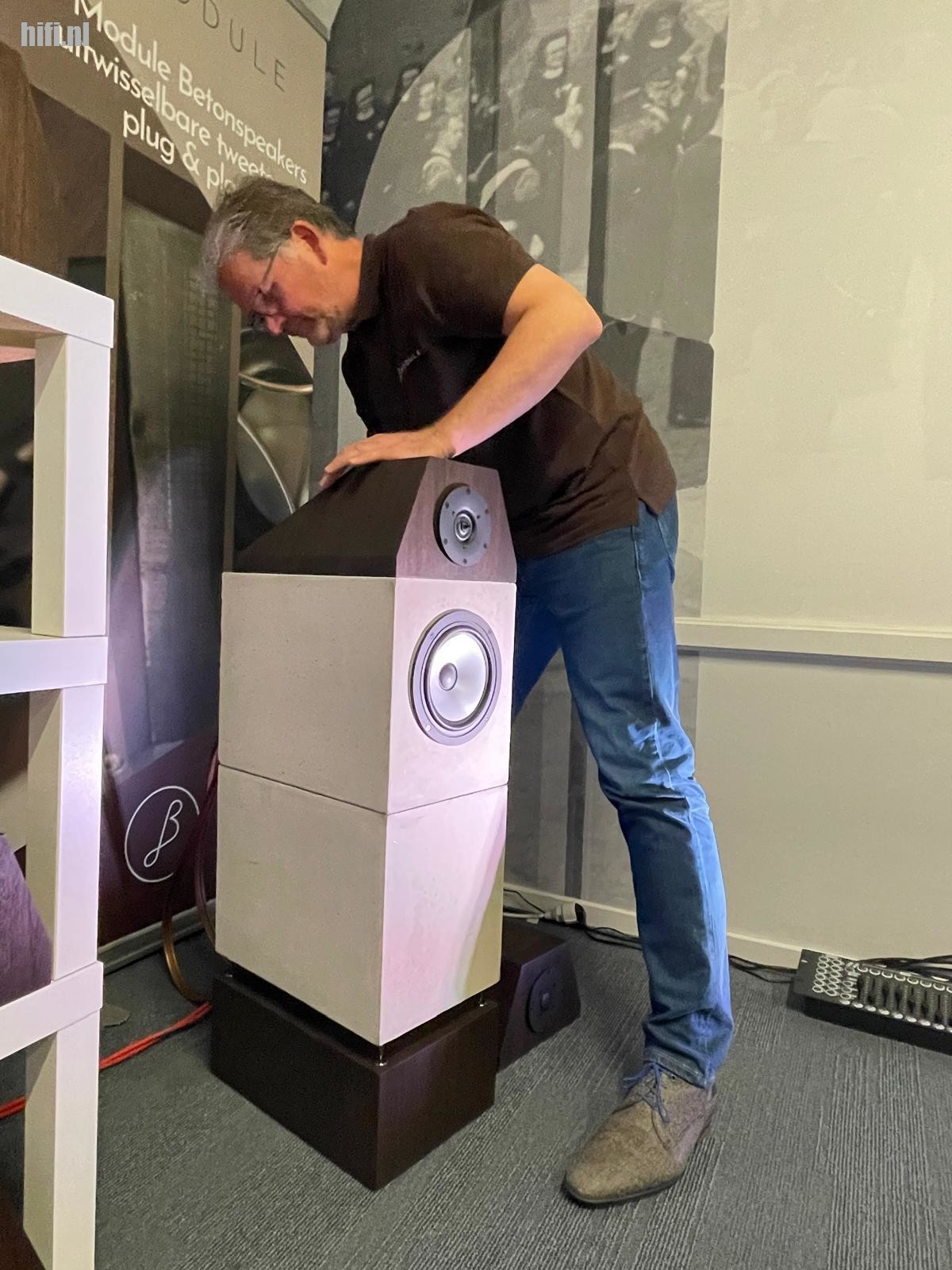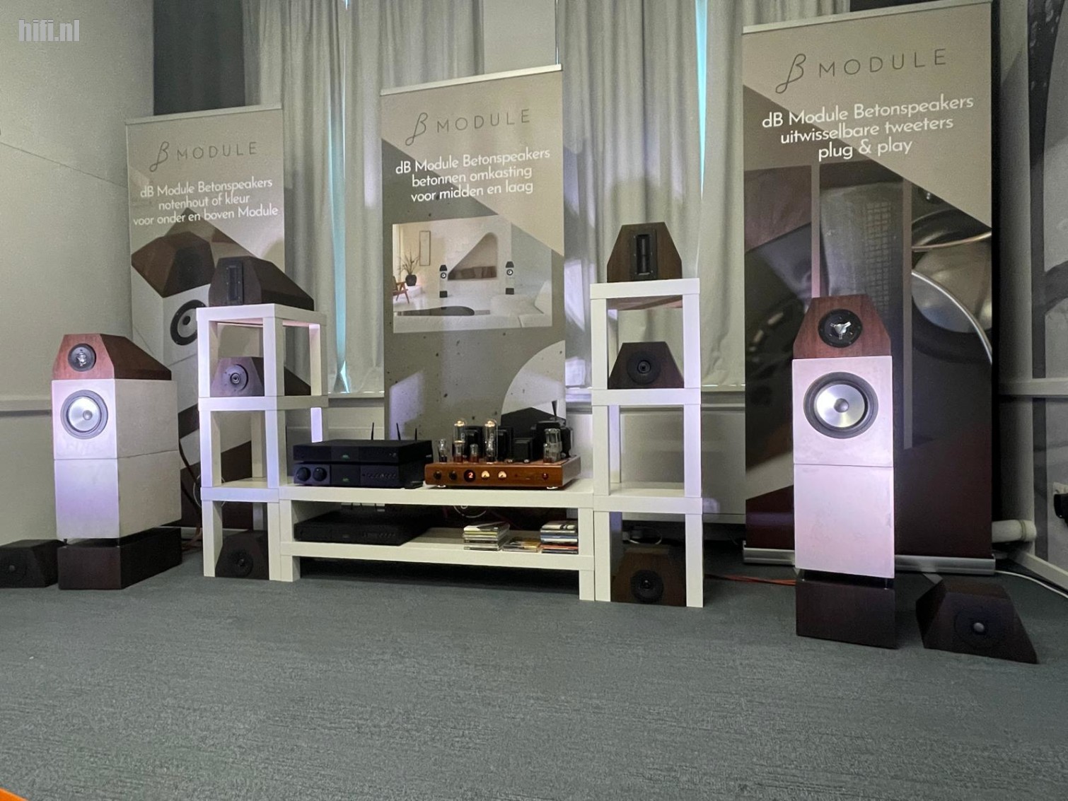 Beton en luidsprekers; dB Module omarmt het principe dat een klankkast geen klankkast mag zijn. Zo kwam Hans de Bakker erachter dat beton een goed, massief en nogal inert materiaal is waarin de door hem beoogde bas/middentoner optimaal tot z’n recht kan komen. Kleuringsvrij, wel te verstaan.