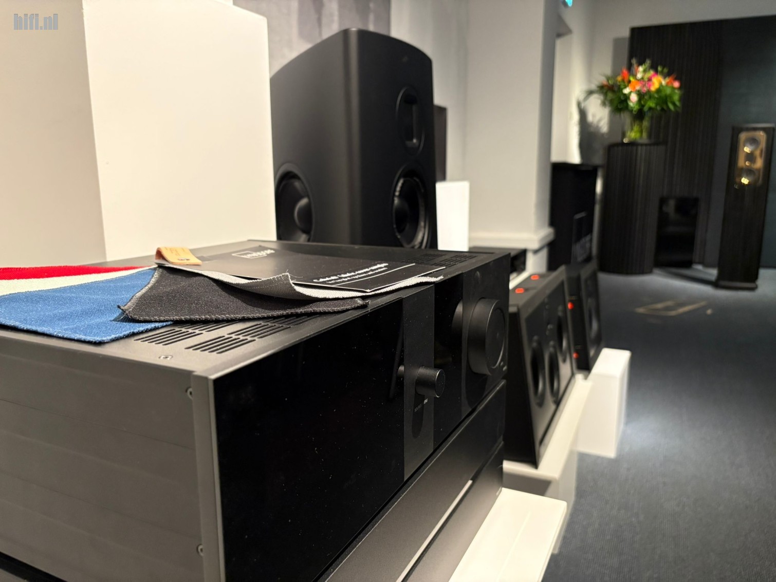 De surround-versterker van dienst, nu we toch alles aan het opsommen zijn, is de Primare SPA25, met 2x de GoldenEar HTR8000 én 2x de GoldenEar Invisa 850 voor het surround- en Dolby Atmos-hoogtespektakel.