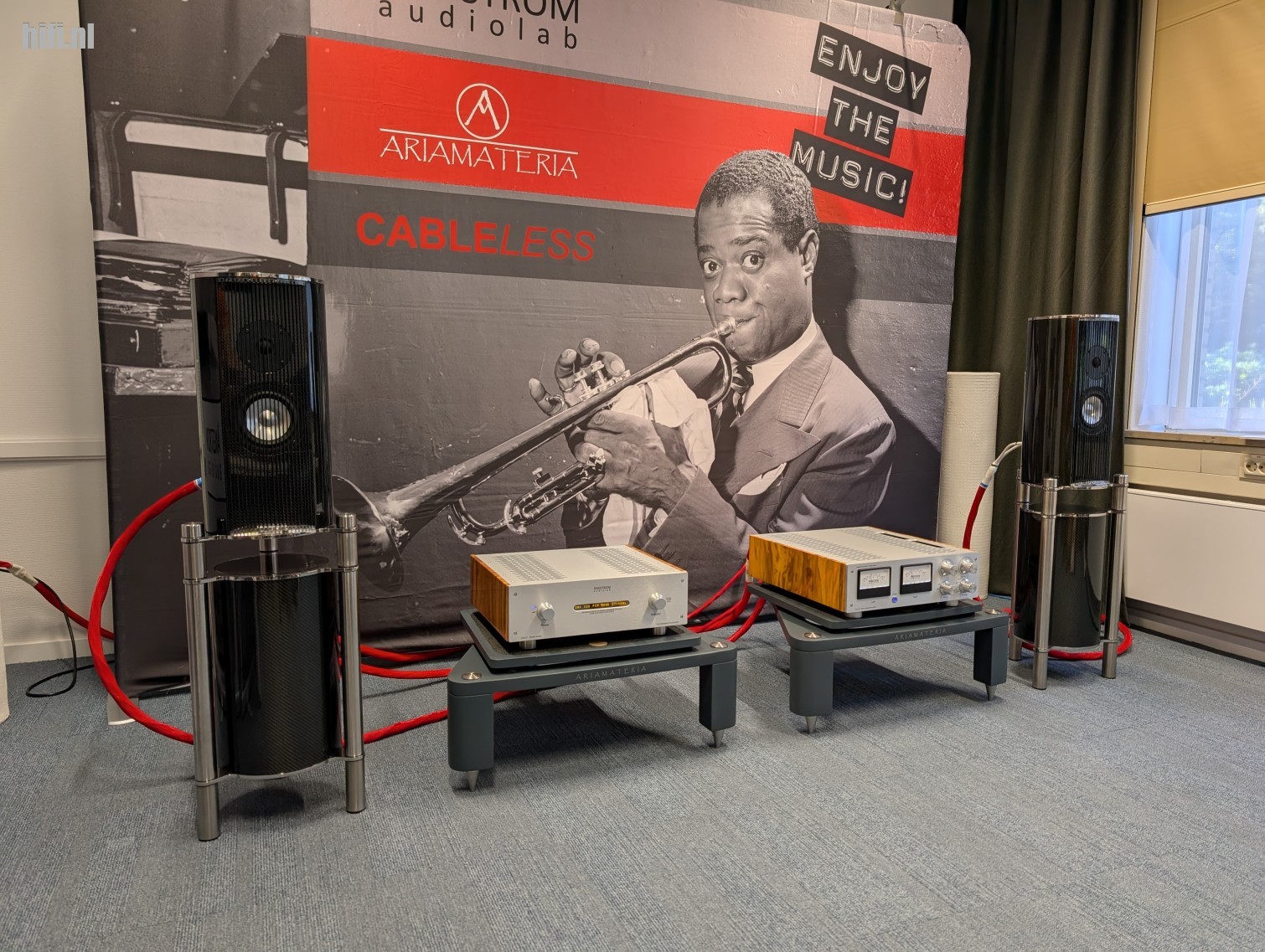 Van Le Soprano is de Apollo XIII meegenomen. Een tweewegsysteem met een los passief bassysteem wat als een geheel op een standaard staat. Bij Ångstrom zien we apparatuur uit de Zenith serie. Van Cableless is de nieuwe ESTAS serie aanwezig. Mooie naam wel, voor een kabelmerk. Een kabel zou niet hoorbaar moeten zijn, immers. Voor de akoestische ontkoppeling wordt gebruik gemaakt van voetjes van Ariamateria.