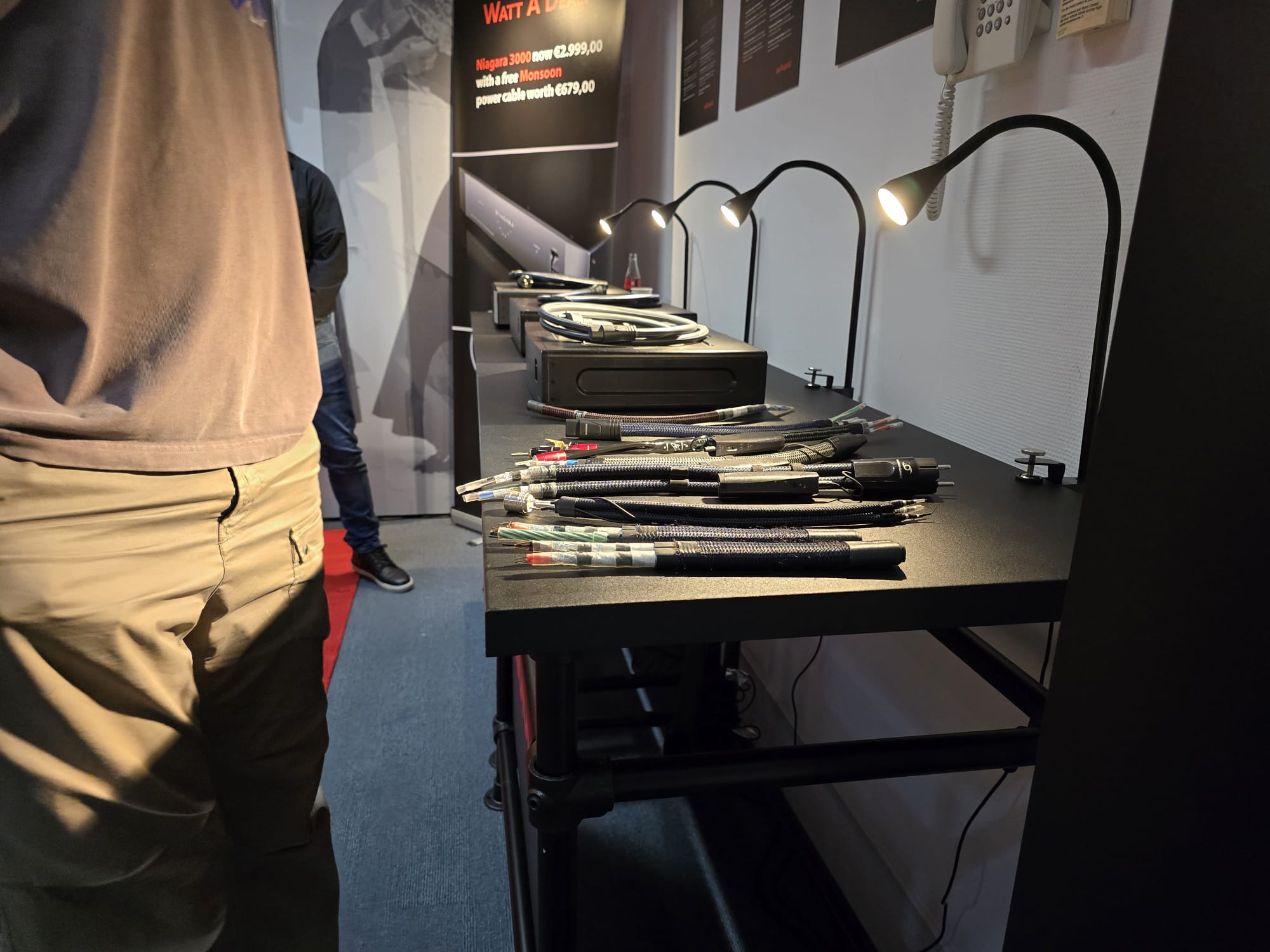 Het Amerikaanse AudioQuest, het merk dat wellicht het beste vertegenwoordigd is op deze en vele andere shows dankzij het aantal merken dat de oplossingen uit Irvine, Californië gebruikt, heeft uiteraard ook weer gewoon een eigen kamer – al komt de bezetting ervan 'gewoon' uit Roosendaal. In de spotlight hier de Brave Heart, de jongste luidsprekerkabel van het merk. De volledige naam luidt AudioQuest Brave Heart Zero-Tech, een luidsprekerkabel die ‘grootser, stiller en in alle opzichten beter’ is dan alle andere luidsprekerkabels die de fabrikant eerder voor deze prijs in de markt wist te zetten. Het formaat van de Brave Heart is dan ook bijna gelijk aan de Mythical luidsprekerkabels van het merk (lees: slechts 0,6 millimeter kleiner).