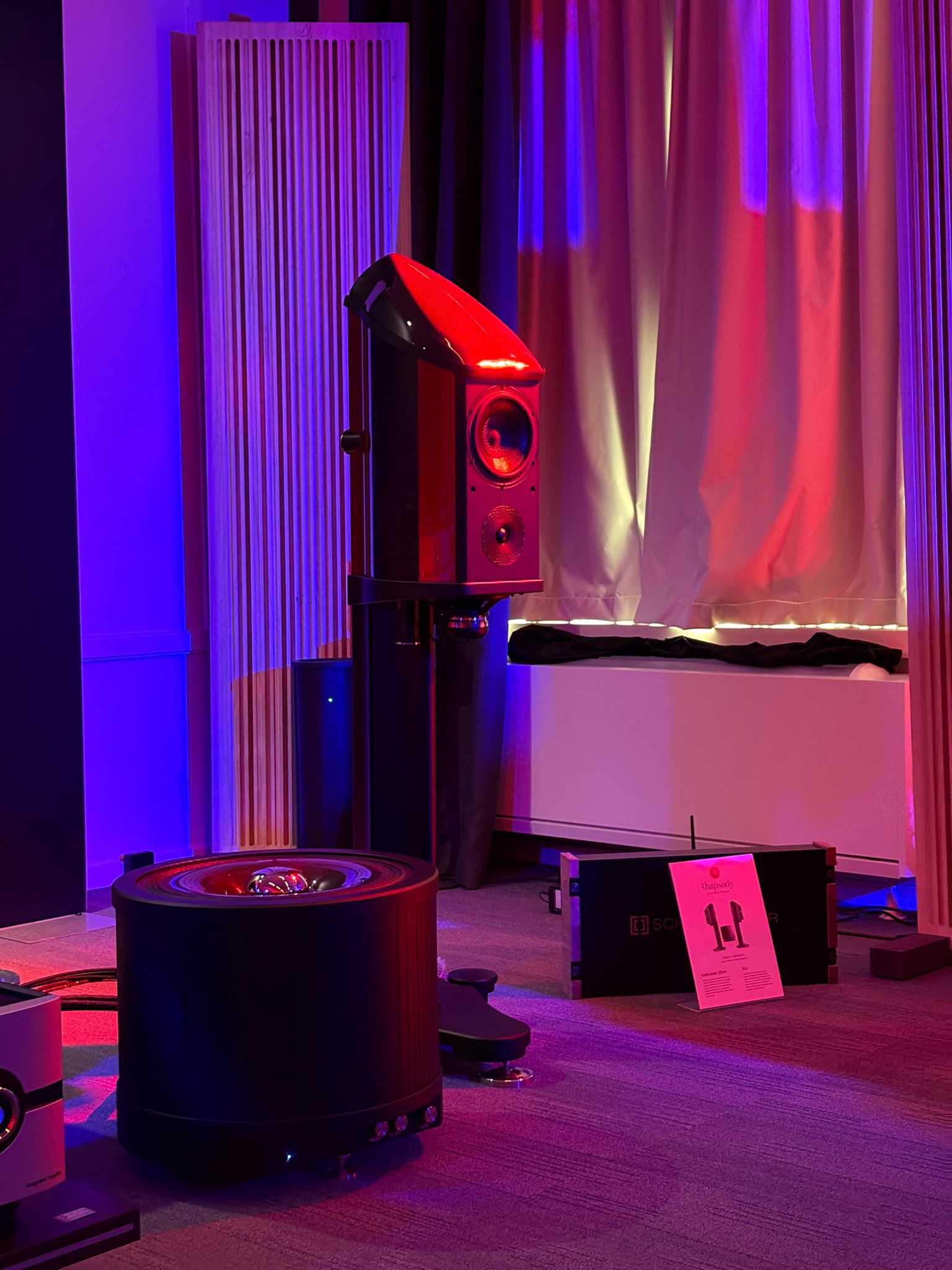 Bij Reference Sounds nemen ze het eigen credo heel serieus: bringing you closer is het doel. In kamer 42 kun je – vandaag nog, als je dit op de zondag van de show leest – kennismaken met het allergrootste productiemodel van Wilson Audio. Deze Chronosonic XVX, nog nooit eerder vertoond in de Benelux, doet zonder énige concessie recht aan Wilson’s denkwijze: timing is everything! De configuratie van de mid-hoog sectie is dan ook opmerkelijk: de XVX bestaat uit een viertal upper modules waarbij de onderste module de zeven inch mid/laag sectie betreft met direct daarboven een speciale vier inch midrange module. Boven deze compacte midrange vind je de Convergent Synergy Dome Tweeter met daarboven nogmaals de grotere zeven inch mid/laag module.