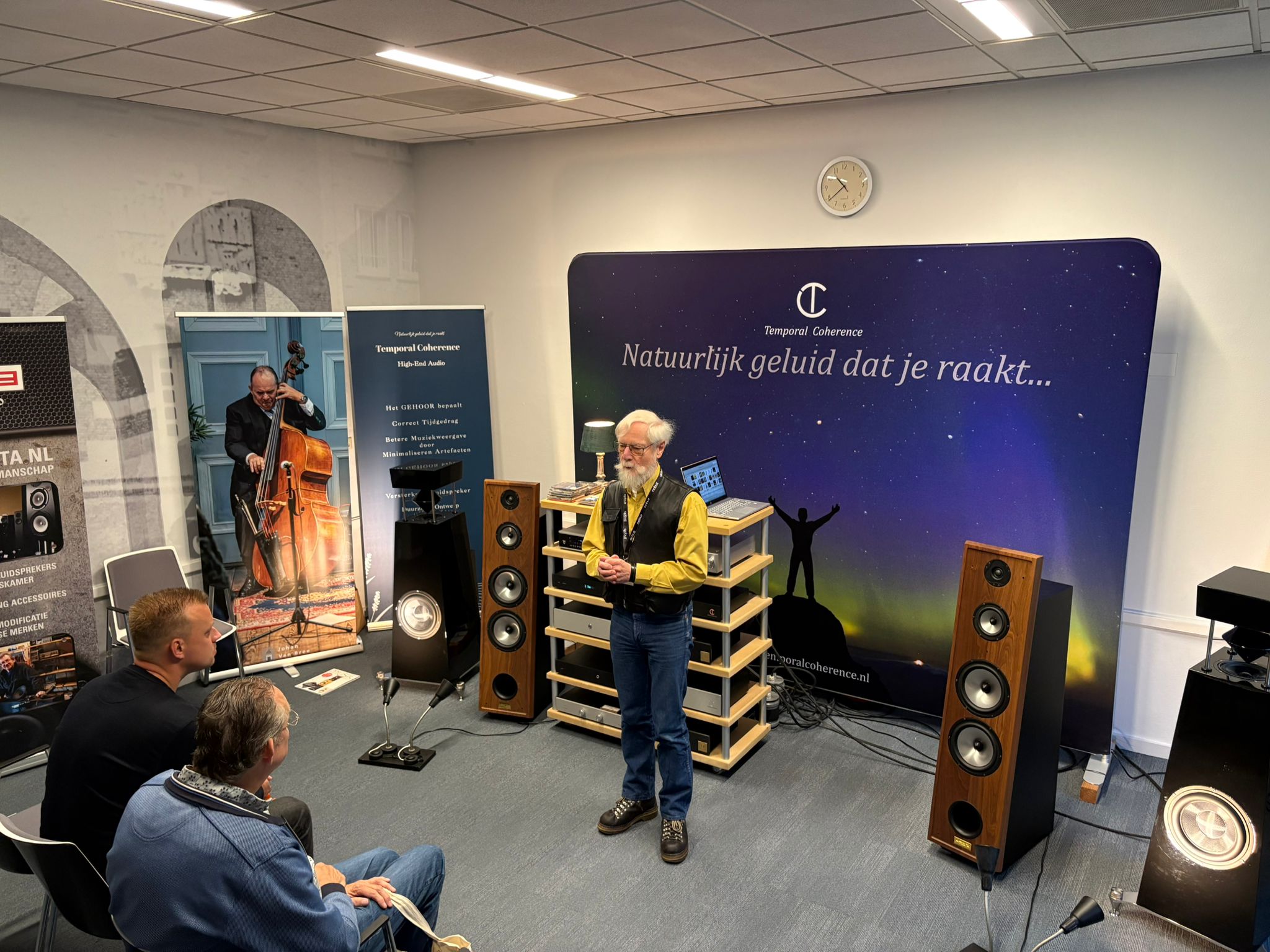 Gedemonstreerd wordt hier met de Temporal Coherence Pyramide, een rondstralend, tijdcorrect, actief audiosysteem, en de Hepta Orator speaker, met in beide gevallen aansturing door Temporal Coherence. Zowel de actieve filtering als de versterking in dit systeem zijn intern ontwikkeld. Het geheel wordt aangestuurd door de CA 020 stuurversterker, eveneens een eigen ontwerp van Temporal Coherence. Elk ontwerp is gericht op het minimaliseren van gehoormatige vervormingen om zo de maximale detaillering en muzikaliteit te behouden – zelfs bij complexe muziek.