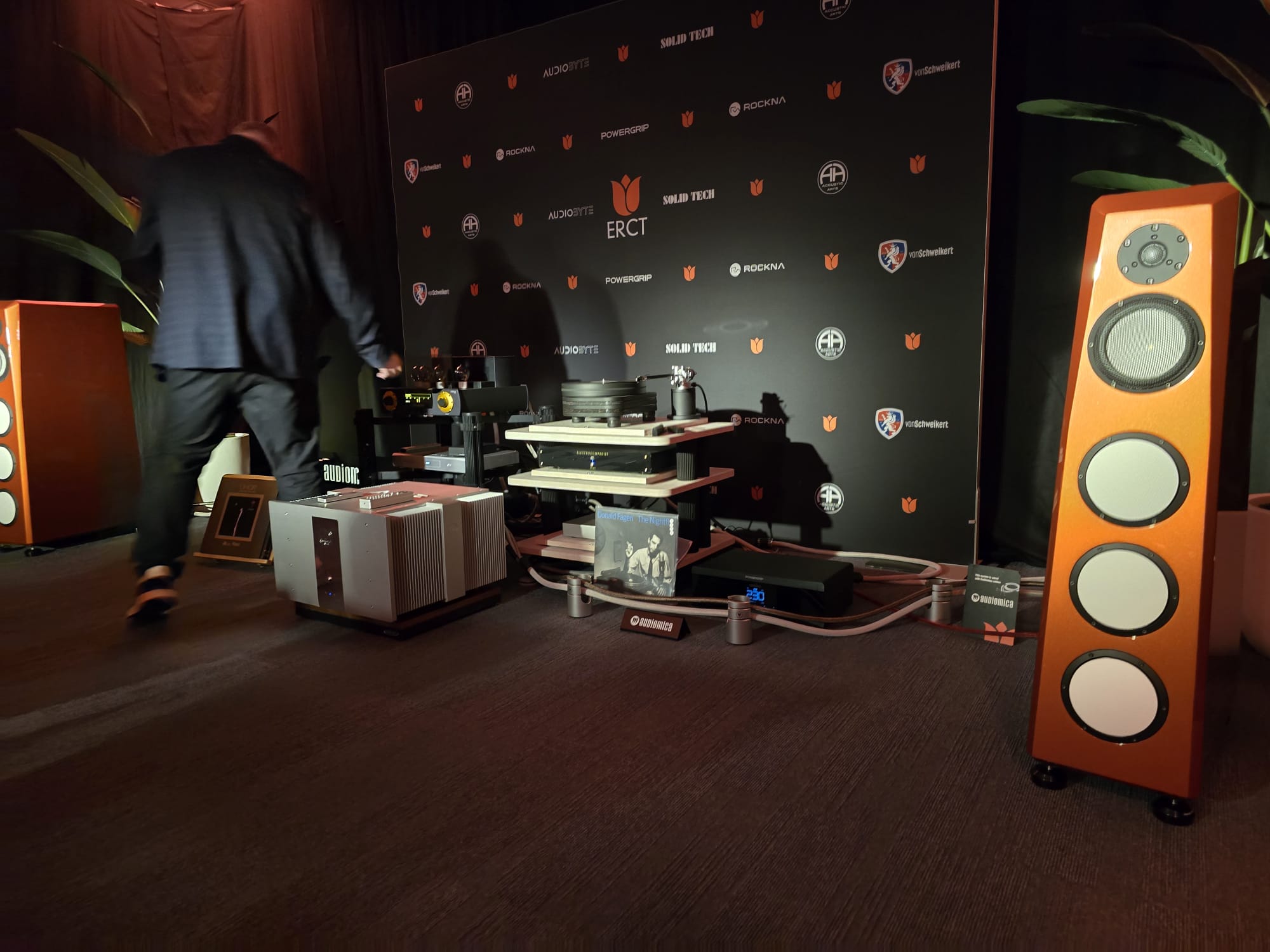 We starten de tweede dag van 'DAE2025' door net als op de zaterdag van de show een klein beetje vals te spelen. Vóór de aanvang van de zondag om 10u gingen we namelijk al bij Reference Sounds langs. Om precies te zijn: dat deden we zaterdagavond ná de show, en in het bijzijn van niemand minder dan de Amerikaanse gasten van Michael Huigen, te weten Peter McGrath (director of sales cq brand ambassador Wilson Audio) en Bill McKiegan (Dan D'Agostino president, hier rechts op de foto), die ons meenamen in wat objectief en subjectief gezien toch wel de set van de show moet zijn.