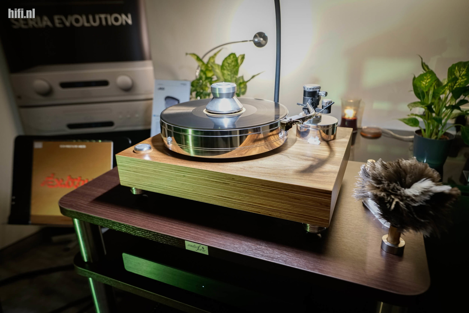 Er zijn op de AV Show veel mooie draaitafels te bewonderen, maar deze Wood MPX van Acoustic Solid met zijn laagjes-plinth mag echt in de top drie. Met z'n gewicht van 35 kg is de 'Solid' in de naam echt niet gestolen. Bonuspunten voor een van de grootste stofjesborstels ooit.