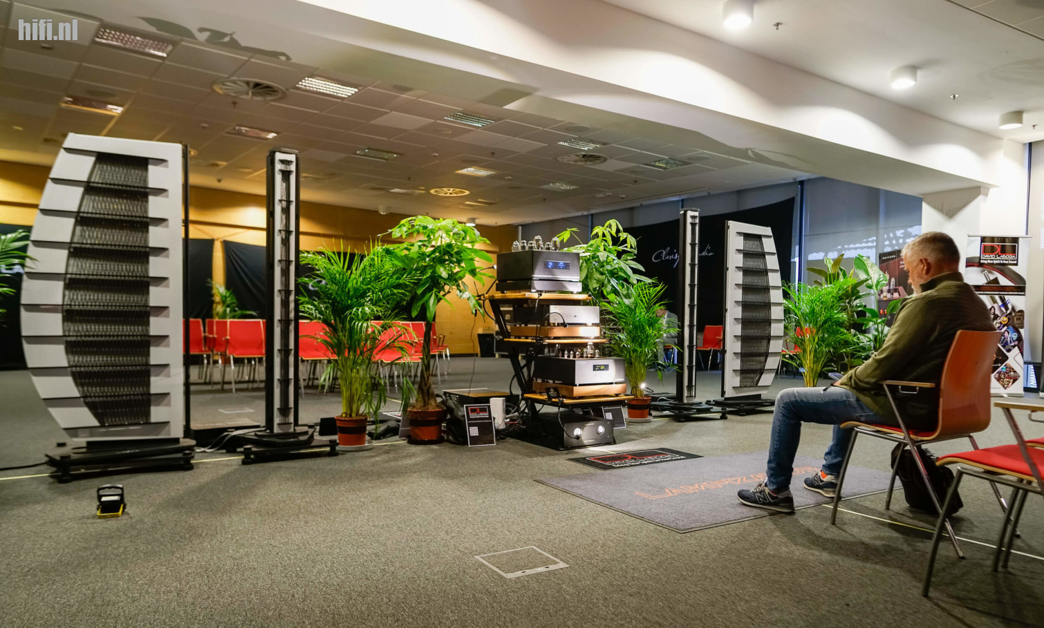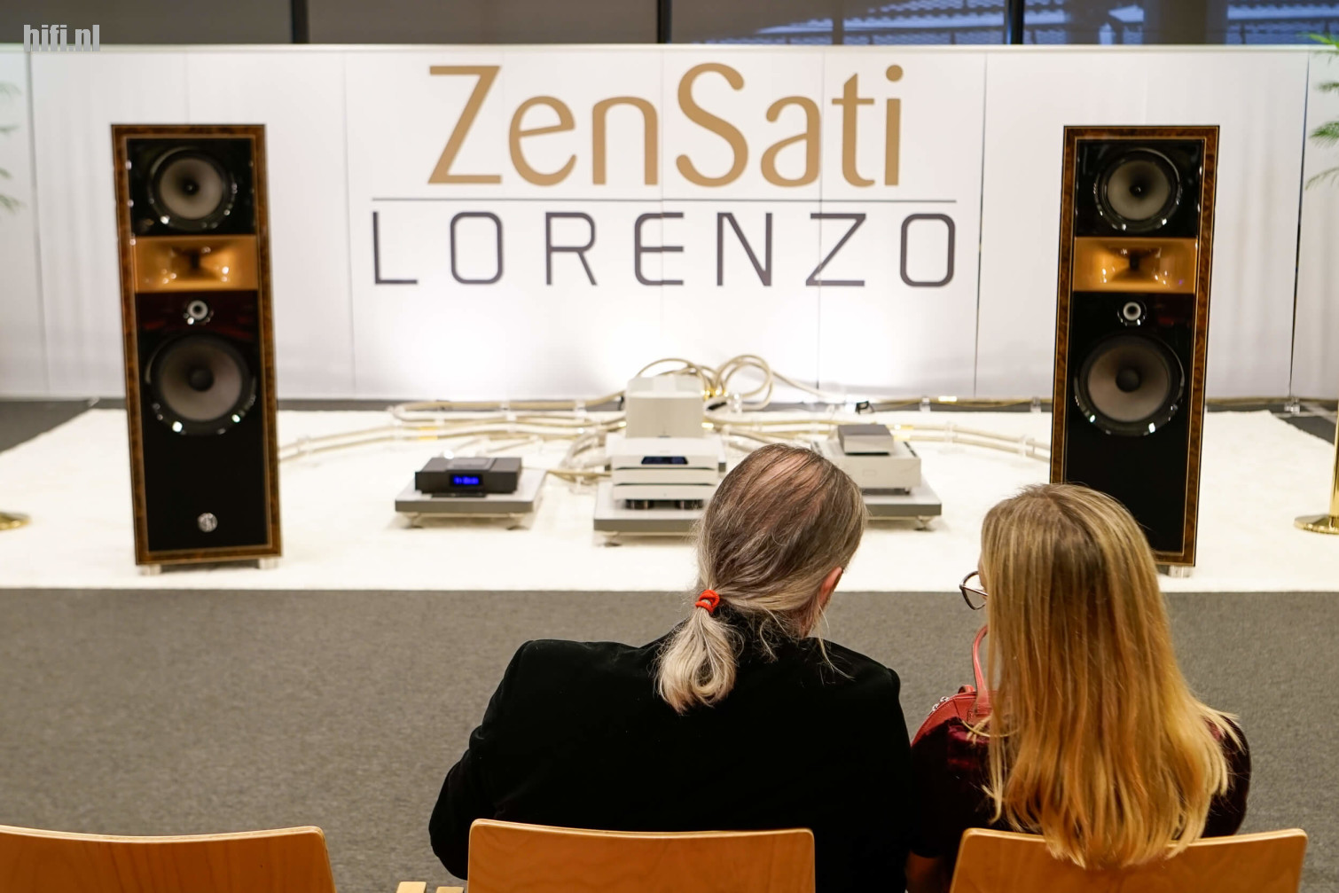 Er hing een sereen sfeertje in deze ruimte waar ZenSati en Lorenzo, zoals je kunt zien, echt in de kijker stonden. Heel het systeem was de moeite, met onder meer een bijdrage van MSB en Pink Faun. De Lorenzo Audio-speakers mogen joekels zijn, over de afwerking en het enorme geluidsbeeld dat ze creërden absoluut geen klachten. Een mooie en ook wel rustgevende afsluiter in een hoekje van een heel drukke omgeving!