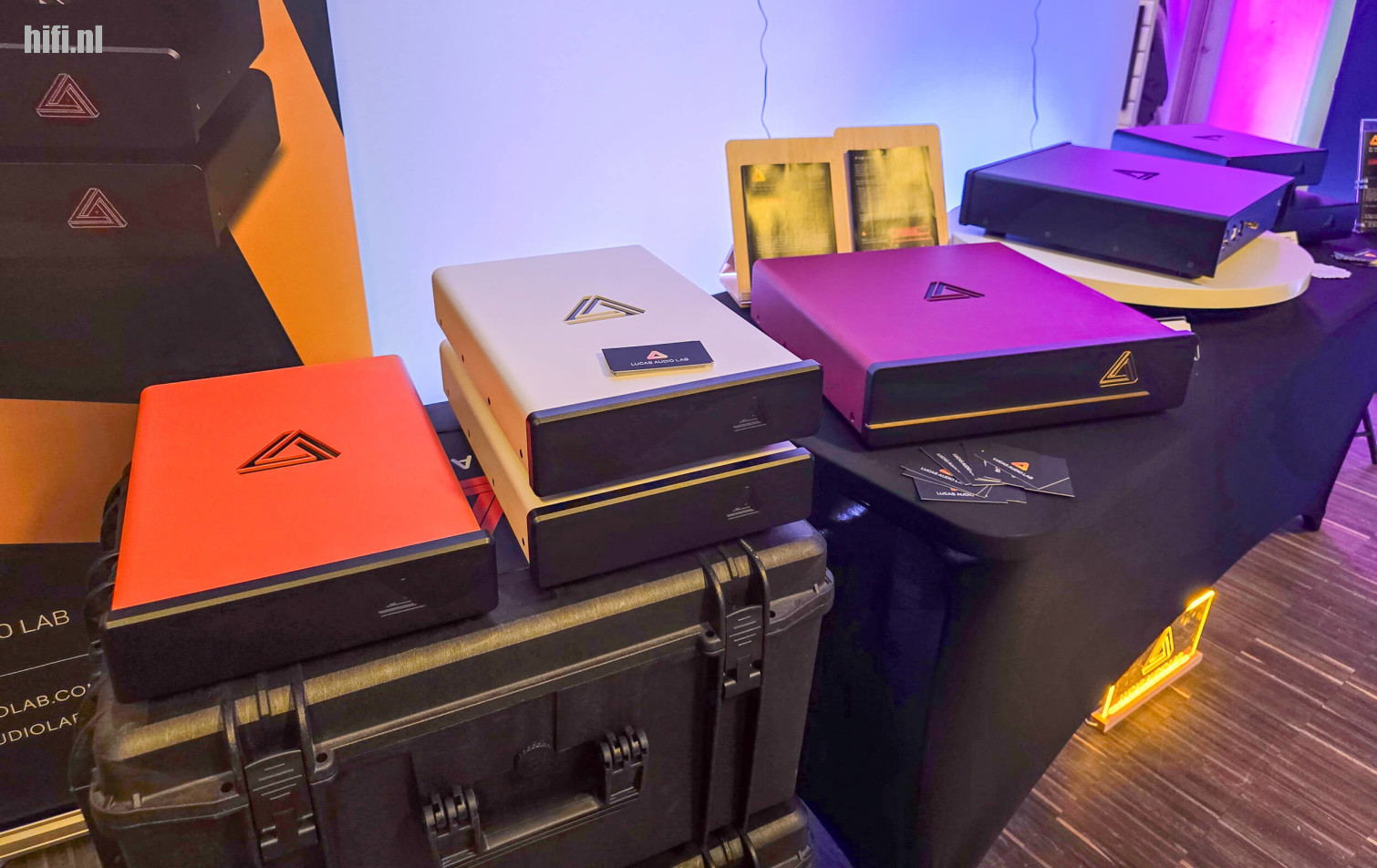 Drie keer raden wat deze kleurrijke dozen zijn? Neen? Deze kleurrijke dozen zijn high-end muziekservers van Lucas Audio Labs. Ze beginnen rond 3.000 euro, en naargelang de opties (denk aan kleuren maar ook USB-reclockers en opslag) en uitvoeringen kan je vele malen hoger eindigen.