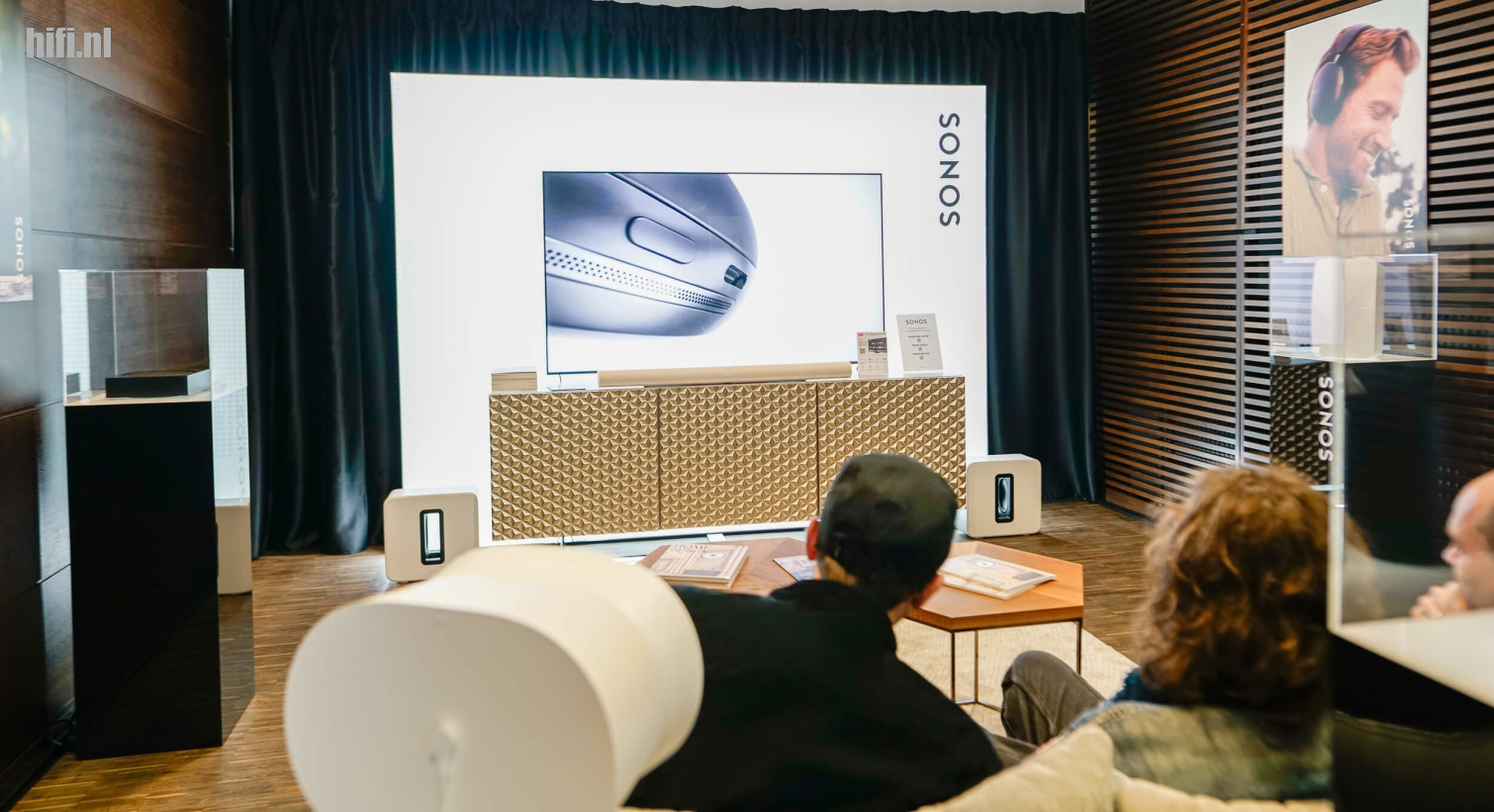 Ook Sonos tekende present, met een 'maximale' Sonos Arc Ultra-opstelling, incluis Sonos Subs en twee Ear 300-speakers achteraan. Weinig mensen weten dat de Arc Ultra dubbele subwoofers ondersteunt, dus het was wel slim om dat hier te demonstreren.