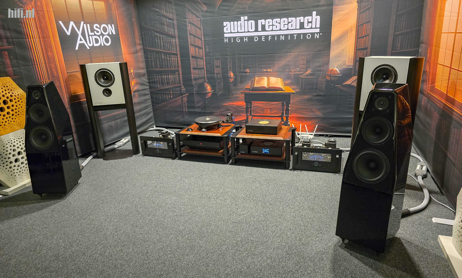 Een beetje een gekke manier van opstellen, zo'n setje Wilson Audio Sabrina V's met daarachter een paar Grimm Audio LS1a's. Maar los van hoe het visueel presenteerden, wisten de Audio Research-versterkers alles goed te maken, net als die Grimm MU2-streamer en de PW1-phonotrap, waardoor het sonisch helemaal klopte.