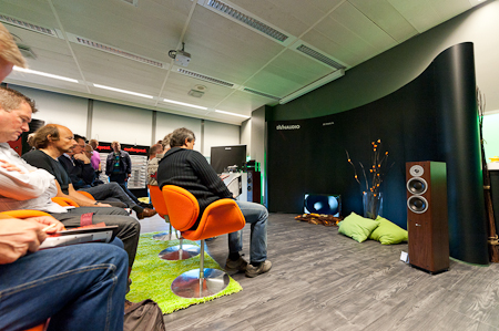 Dynaudio was in het Beatrixgebouw vertegenwoordigd met een luisterruimte, die alle drie de dagen van AV-NU op veel bezoekers kon rekenen.