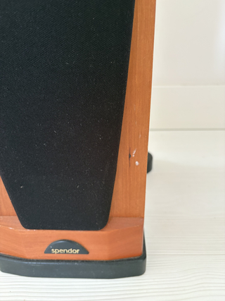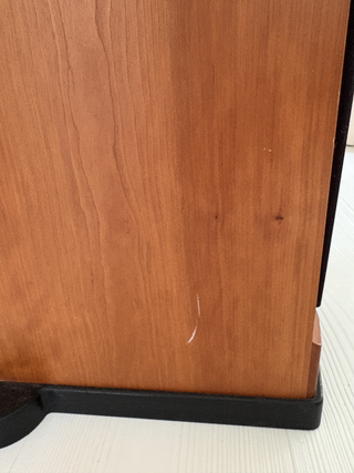 De luidsprekers zijn in goede staat en hebben slechts enkele cosmetische beschadigingen, zie de foto`s. Het is de rechter luidspreker op de foto`s die de kleine krasjes heeft.