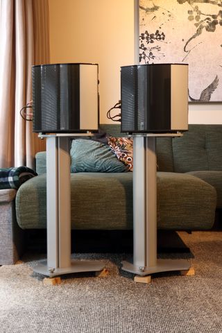Vanwege de scherpe spikes zijn voor de foto`s de luidsprekers even op blokjes gezet. Schotels zijn aanwezig.