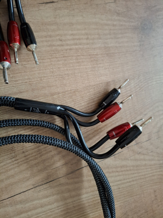 Twee banaan SureGrip 500 aansluitpluggen aan de versterkerzijde en vier banaan SureGrip 500 aansluitpluggen aan de luidsprekerzijde, zodat het laag segment en het hoog segment van de luidspreker apart kunnen worden aangesloten.