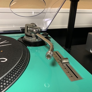 Tenslotte als belangrijkste is de tonearm vervangen door een nieuwe! Let wel, hiermee doelen we op het bovenste gedeelte (ophanging, gewicht en de arm zelf) van de tonearm. De basis waar hij op staat is nog origineel.