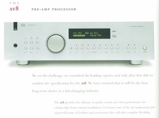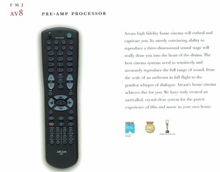 Complete Arcam set bestaande uit AV-8 processor, P7 ampli, T32 tuner en DV29 studio grade DVD-speler. Voor degenen die niet het `laatste surround snufje` wensen is dit een buitenkan, ook één van de zeldzame sets die voor Hifi ook geschikte zijn, onder andere door hun onvoorwaardelijk stabiele eindtrappen.