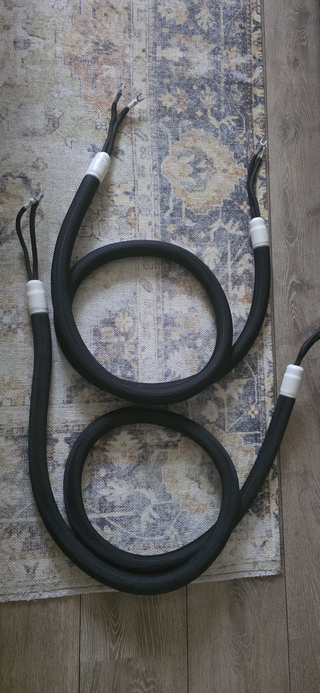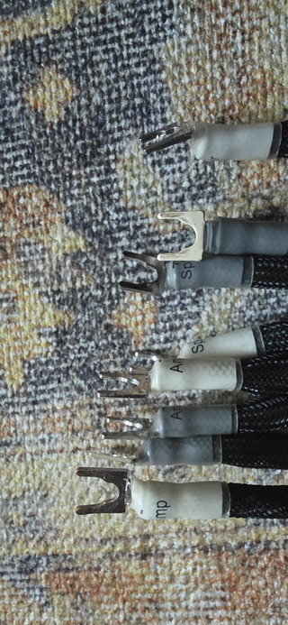 Wegens overstappen naar actieve systeem,te koop Shunyata Orion luidsprekerkabels van 2,5 meter met hoogwaardige spades connectoren, rhodium afgewerkt. De kabels zijn in zeer goede staat.