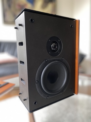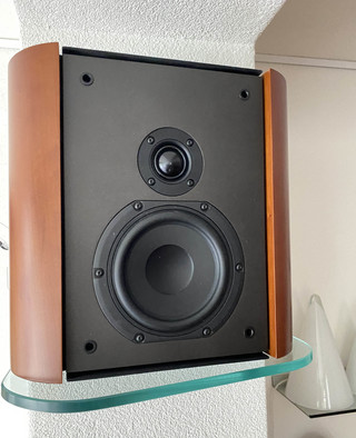 Wegens overcompleet twee Audio Physic Surround speakers, type Sky-High. Uitgevoerd in amerikaans kersenhout en in absoluut onbeschadigd. Technisch 100%. Elegante surround of bookshelf luidspreker. Extra box volume wordt verkregen door de basreflex openingen te laten uitkomen in de holle zijwanden. Hierdoor zijn ze plezierig ondiep en makkelijk aan de wand te plaatsen. Afmetingen: (HxBxD) 295mm x 310mm x 130mm.