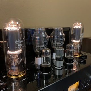 We hebben er weer een, een prachtige buizenversterker van Line Magnetic, de LM-805IA met de krachtige 805 buis en 300B buis als driver voor een totaal vermogen van 2x48 watt in pure klasse A.