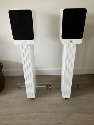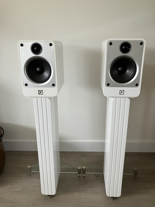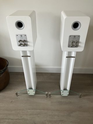 Te koop een in zeer goede staat verkerende set Q Acoustics luidsprekers type Concept 20 in gespoten wit (origineel).