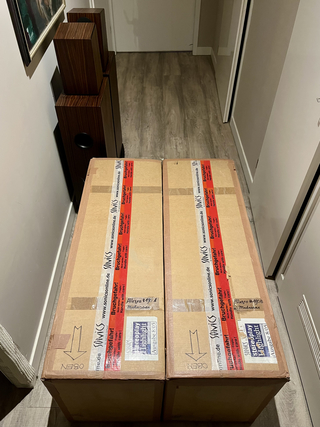 Natuurlijk is de set beschikbaar met de complete originele verpakking. Rekeningen van de Seas units voor handen. De kasten zijn in geweldige staat en het houtfineer is behandeld met meubelolie. Het betreft echt houtfineer, een klein natuurlijk verloop is logisch. Anders moet je ze in de dozen in opslag houden. Op de foto’s zie je dat ze nog steeds prachtig zijn, dat zie ik ook echt wel eens anders. De units zijn voorzien van zwarte Visaton schroeven, een kwestie van smaak, de originele metalen schroeven zijn er ook. Volledige historie bekend, ook heb ik van de eerste eigenaar de originele aankoopbon.