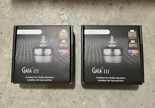 - set Iso Acoustics Gaia III dempers, als optie en uiteraard beschikbaar met alle bijbehorende accessoires. Dit heeft als effect een grote upgrade. En ze klinken af fabriek al zo goed.