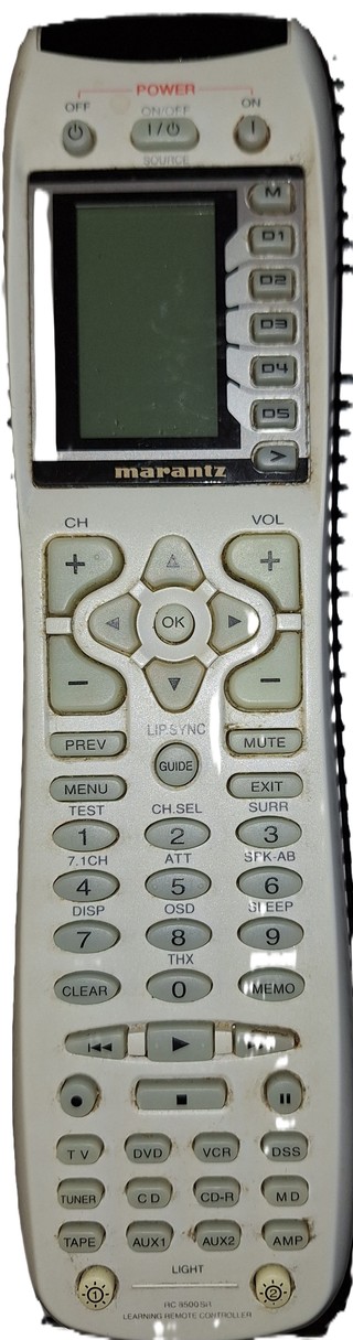 Specificaties: Afstembereik: FM, MW Uitgangsvermogen: 105 watt per kanaal in 8? (stereo) Surround-uitgang: 105W (voor), 105W (midden), 105W (achter) Frequentiebereik: 8Hz tot 100kHz Totale harmonische vervorming: 0,08% Ingangsgevoeligheid: 168mV (lijn) Signaal-ruisverhouding: 105dB (lijn) Digitale ingangen: coaxiaal, optisch Videoverbindingen: component, composiet, SVHS Afmetingen: 440 x 184 x 463 mm Gewicht: 14,8 kg Accessoires: RC8500SR afstandsbediening