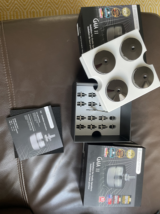 Twee complete sets Isoacoustics Gaia II luidspreker isolatie voetjes. Zijn zo goed als nieuw, slechts tijdelijk gebruikt, maar voor mijn speakers niet geschikt. Geschikt voor speakers van 35 kg. tot 55 kg. Bieden vanaf 550,- euro.