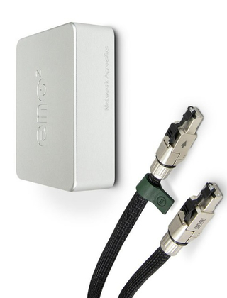 Zeer goed ethernet filter Eno2 van Network Acoustics met twee bijbehorende LAN kabels.