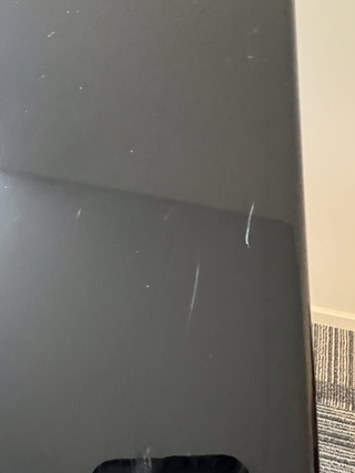 Luidsprekers spelen uitstekend maar hebben wel wat beschadigingen aan de lak, kras en deuk onderaan.