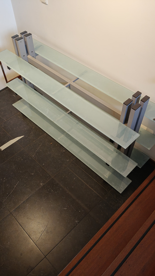 Beschrijvingzwaar en tijdloos av meubel van schroens en schroenss alles in hoogte verstelbaar en in nette staat. https://www.schroers.de/audio-m%C3%B6bel-furniture/biga-150-200/ |