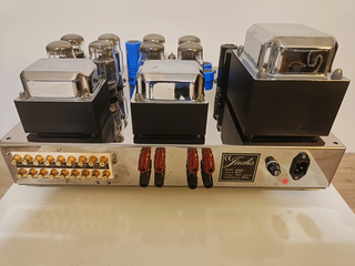 De versterker is in 2025 door importeur geheel nagekeken en geüpgraded (nieuwe vermogen condensatoren en DA-88 MK2 filament). Buizen e.d. getest.