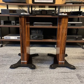 Het gaat hier om een set speakerstands van het type 1QR250 in de kleur rosewood (glossy piano finish) met matzwarte top en onderplaten.