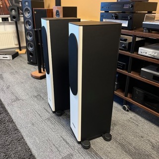 Het gaat om een set Audio Solutions Overture 0303F mkIII speakers met een mat wit front.