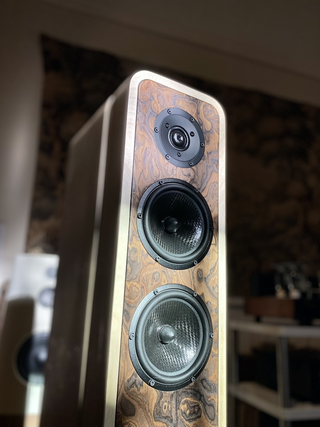 Deze set luidsprekers is in onze winkel te bekijken, te beluisteren. De set is nagenoeg nieuw. Uitgevoerd in de luxe, optionele Burl Walnut uitvoering.